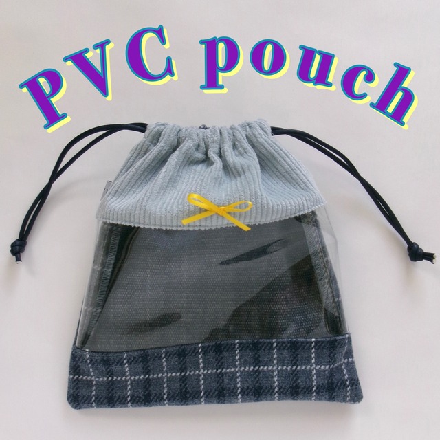 PVC pouch*窓付き巾着ポーチ コーデュロイ