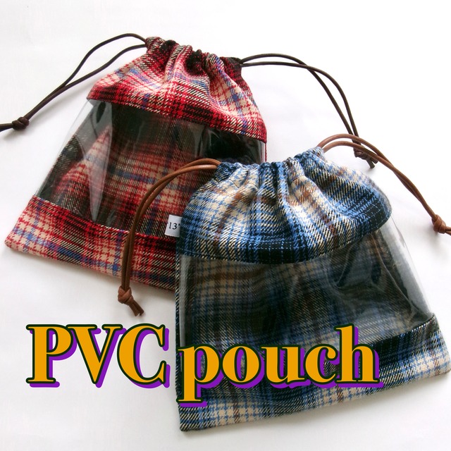 PVC pouch*窓付き巾着ポーチ チェック柄