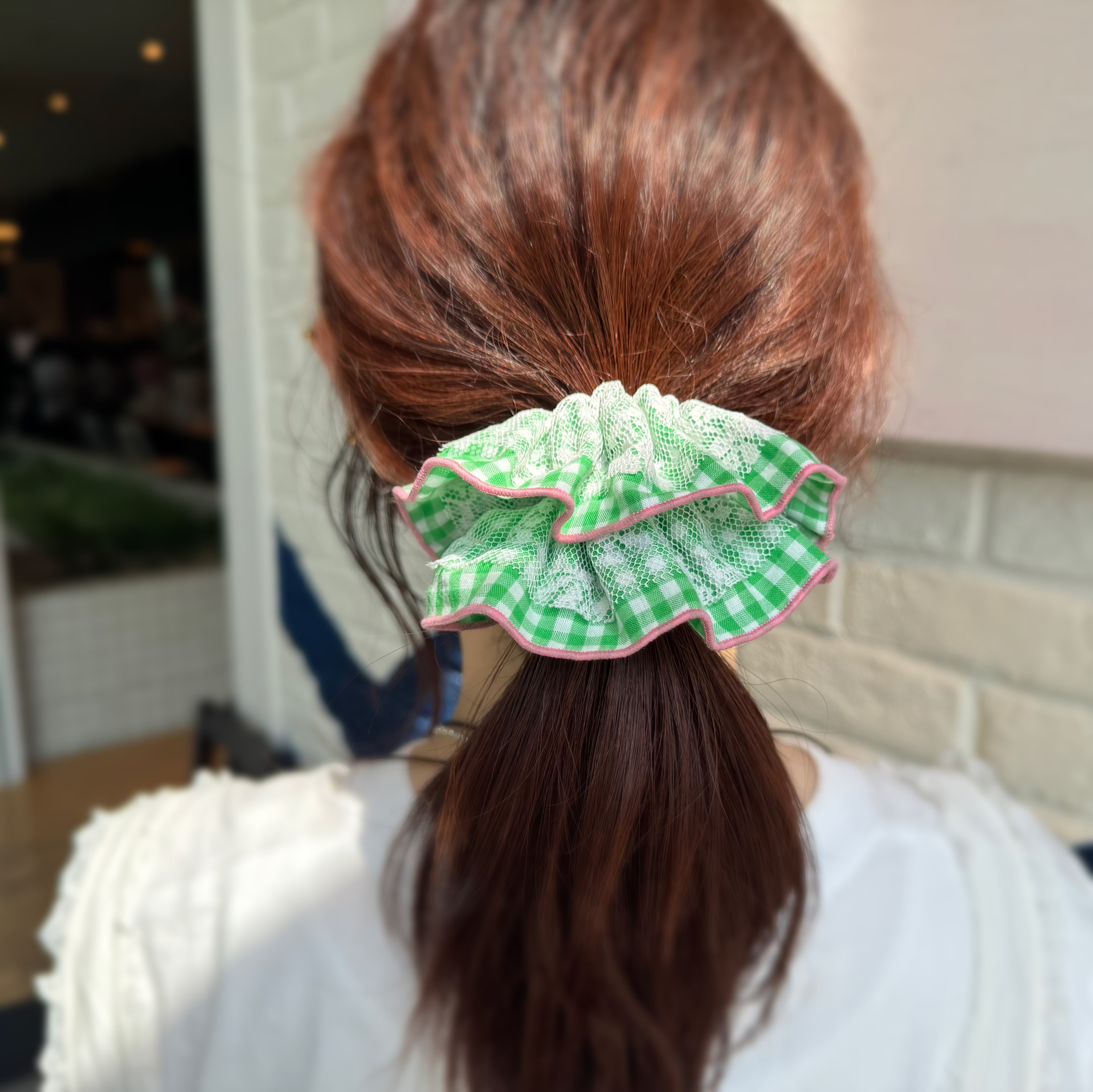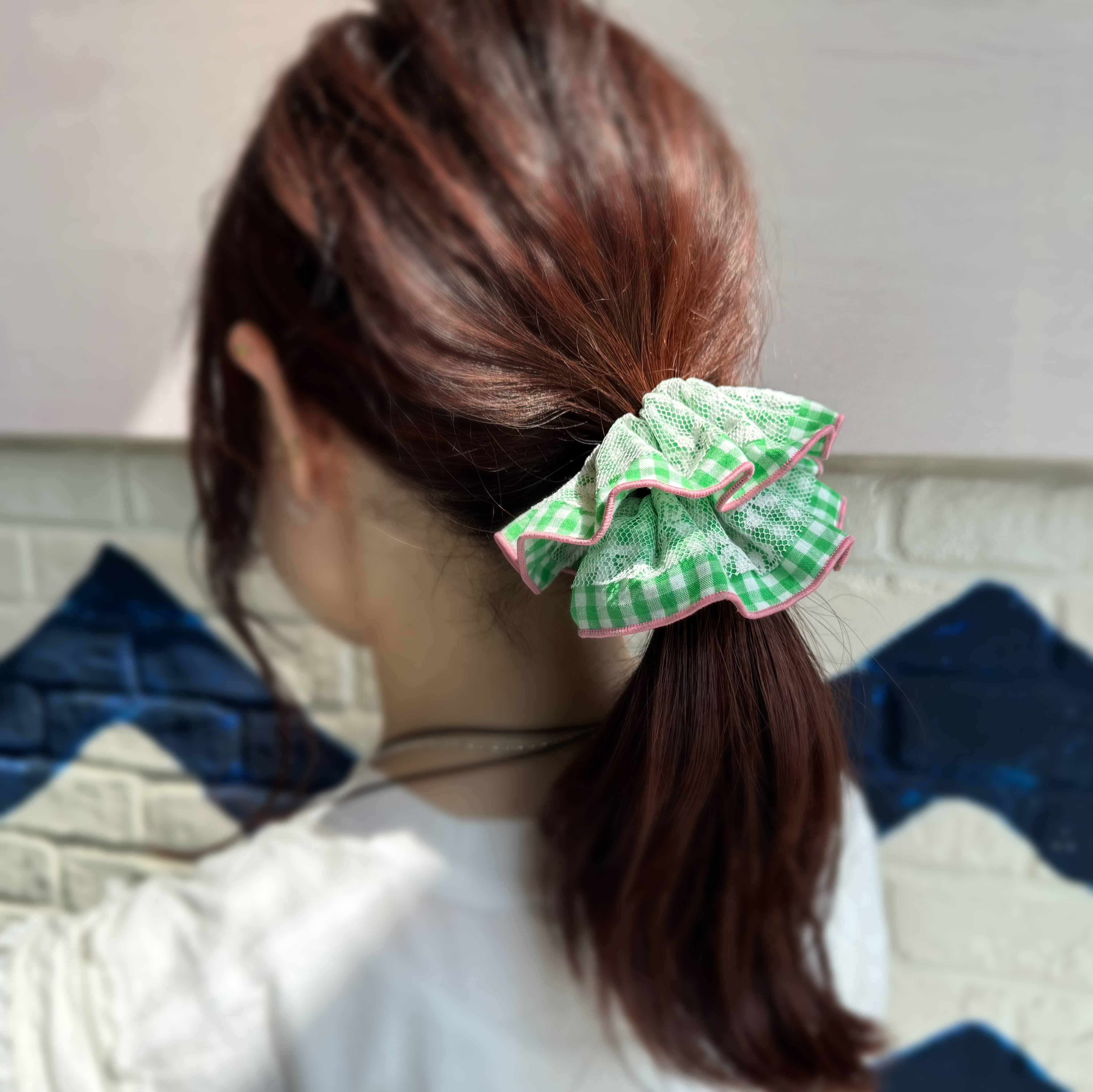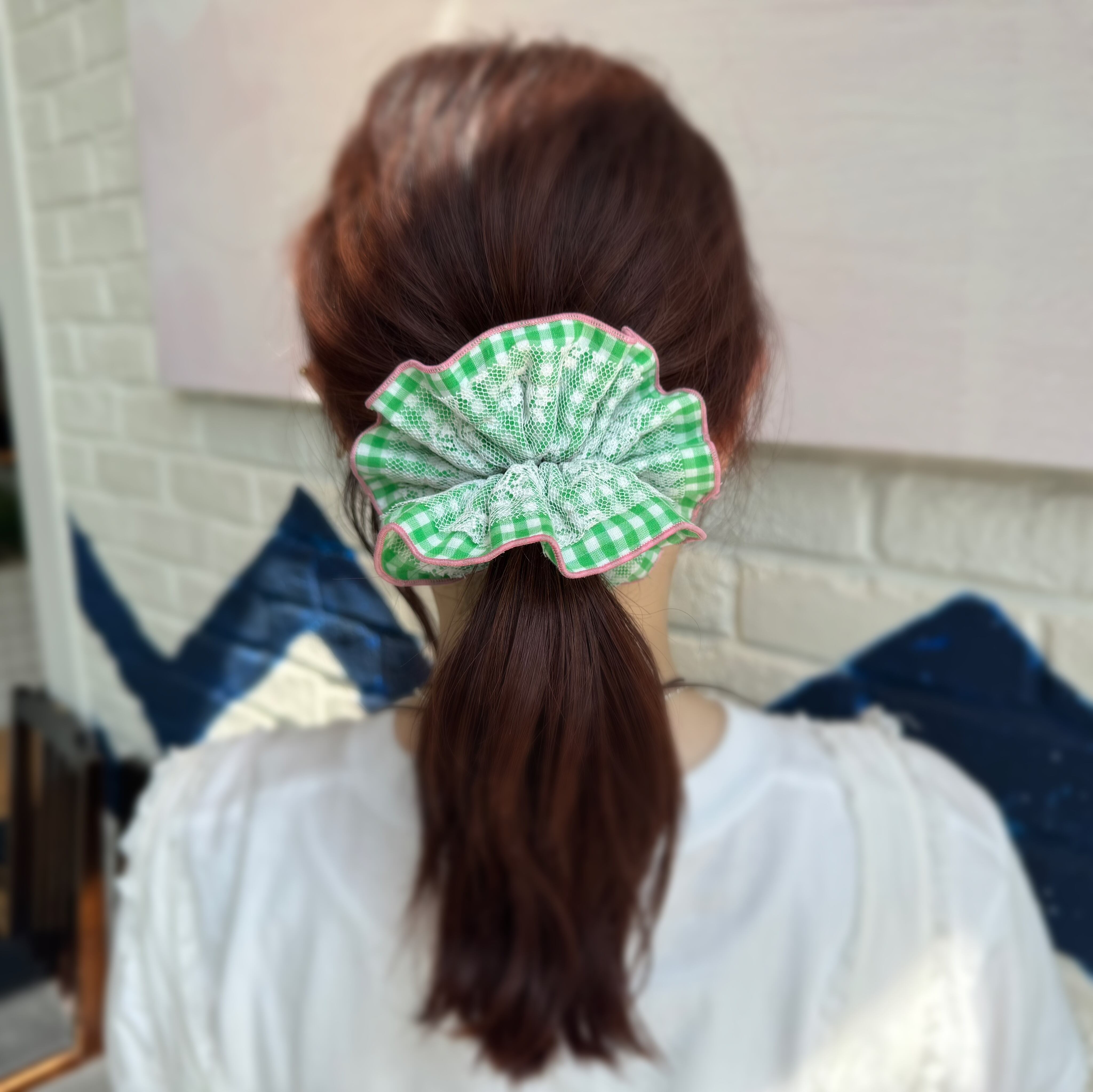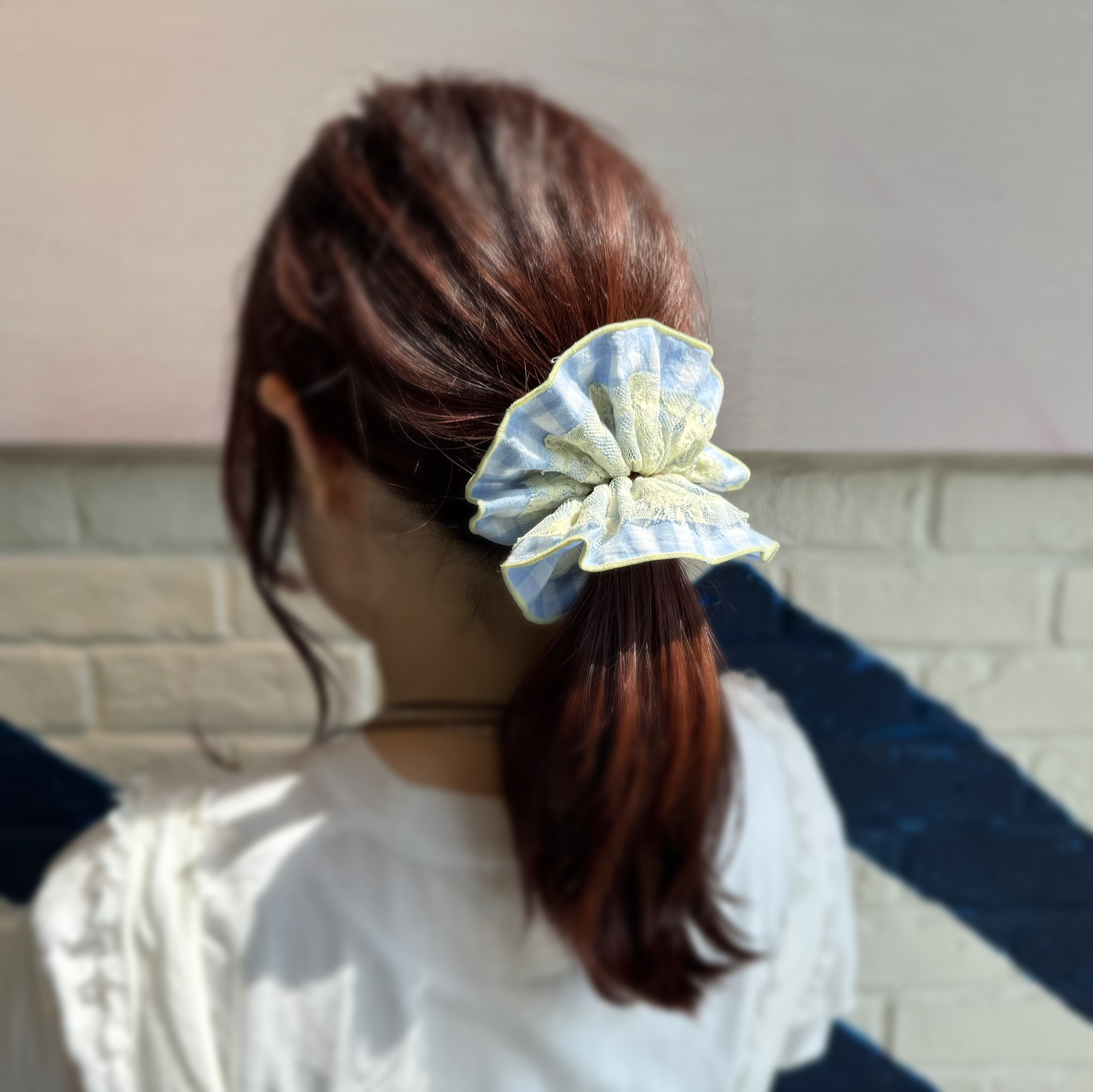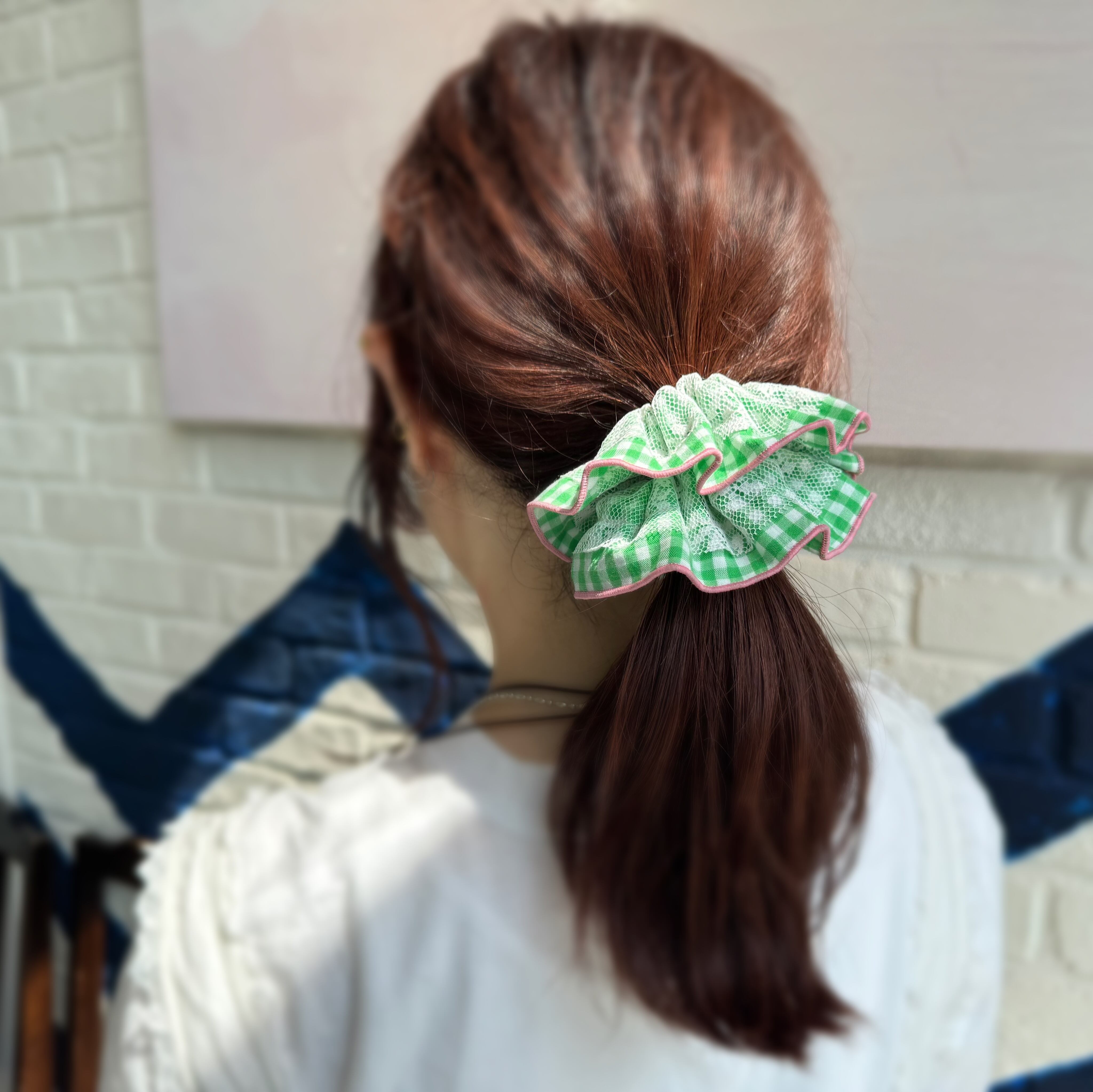 レースを重ねたボリュームのあるシュシュです*