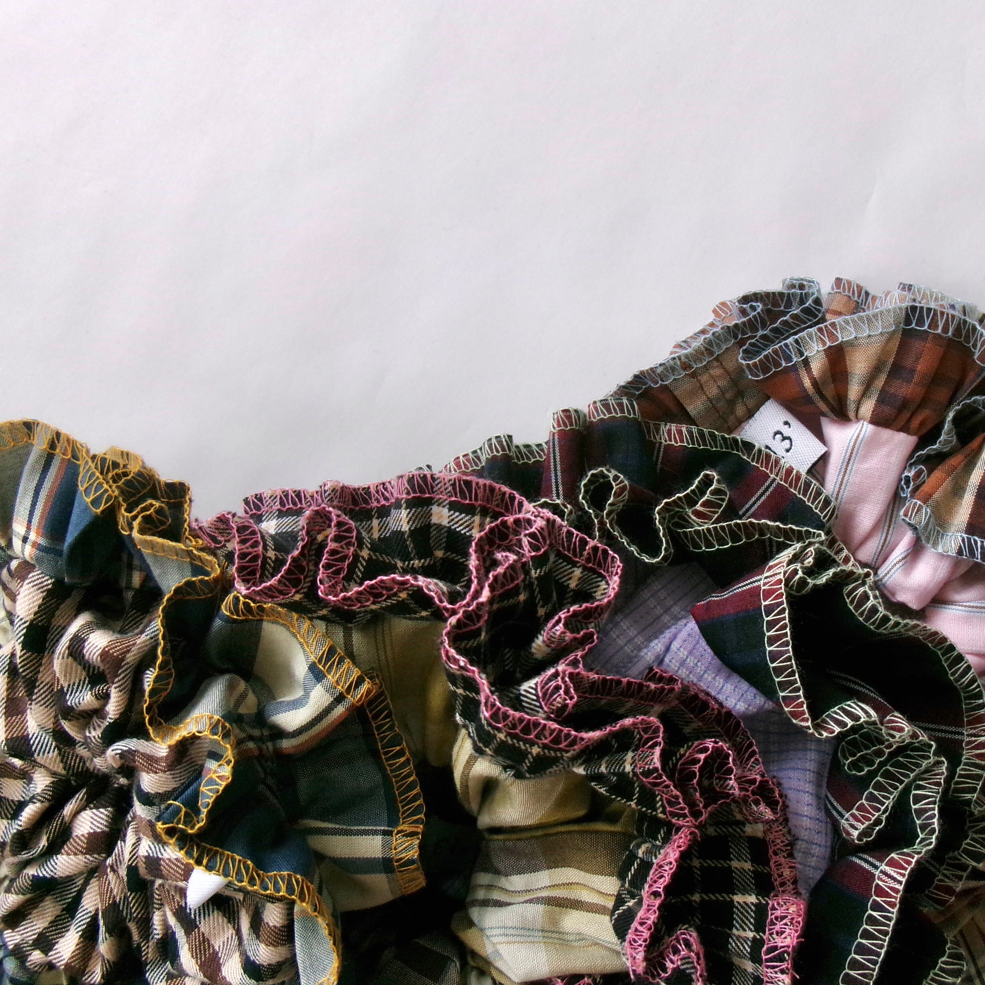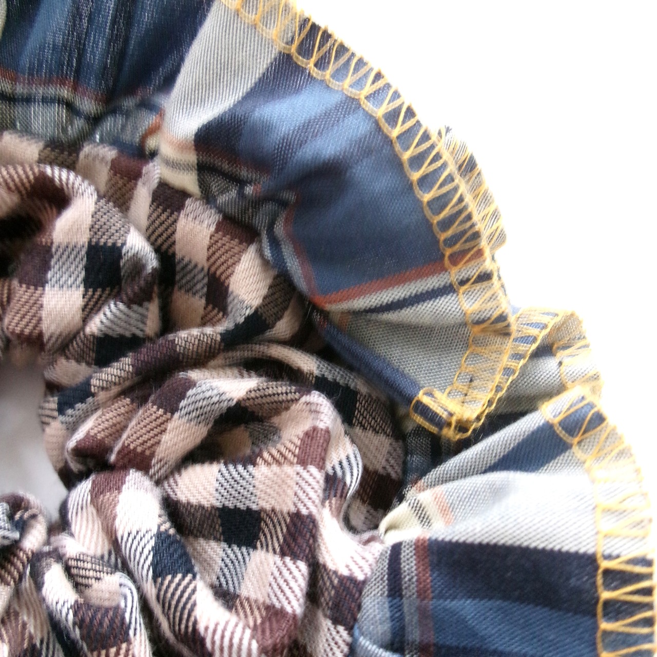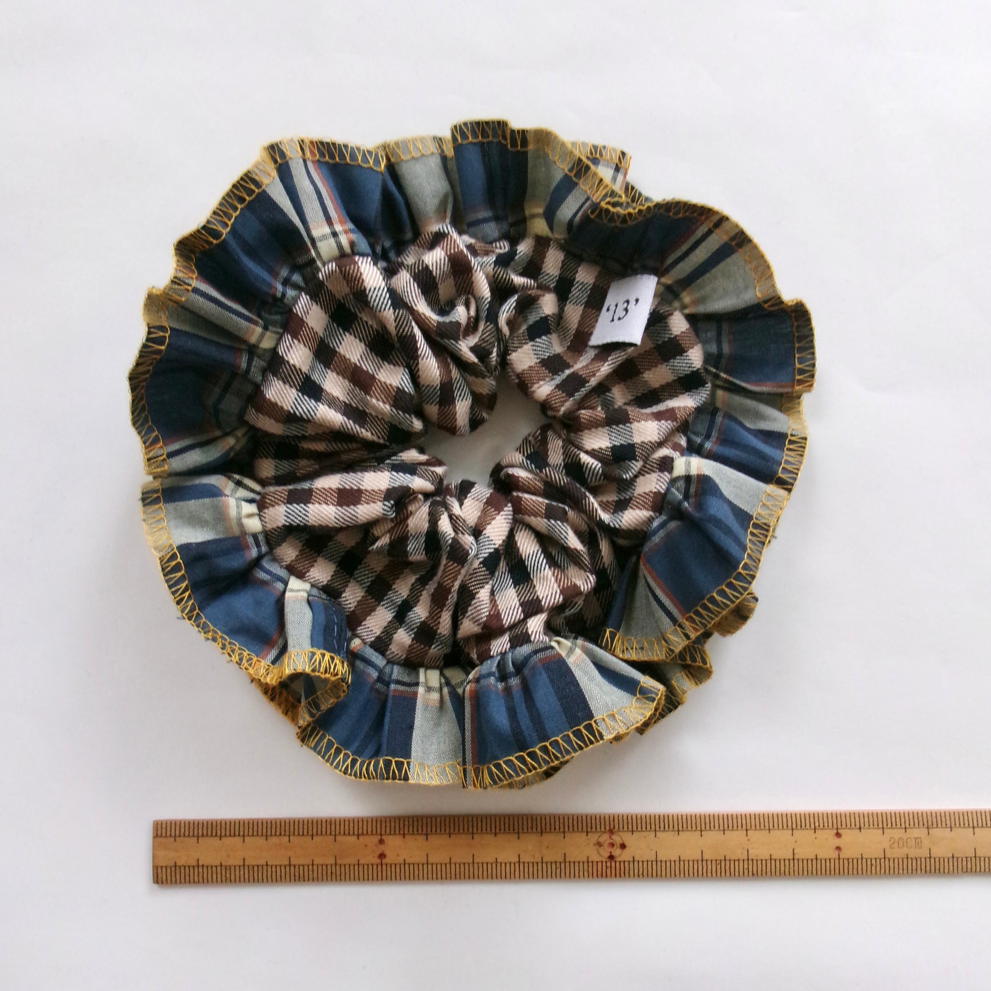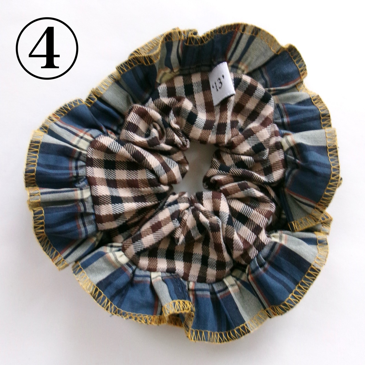 ④ブルー系のチェック柄フリル (イエローの糸)×ブラウンカラーのチェック柄