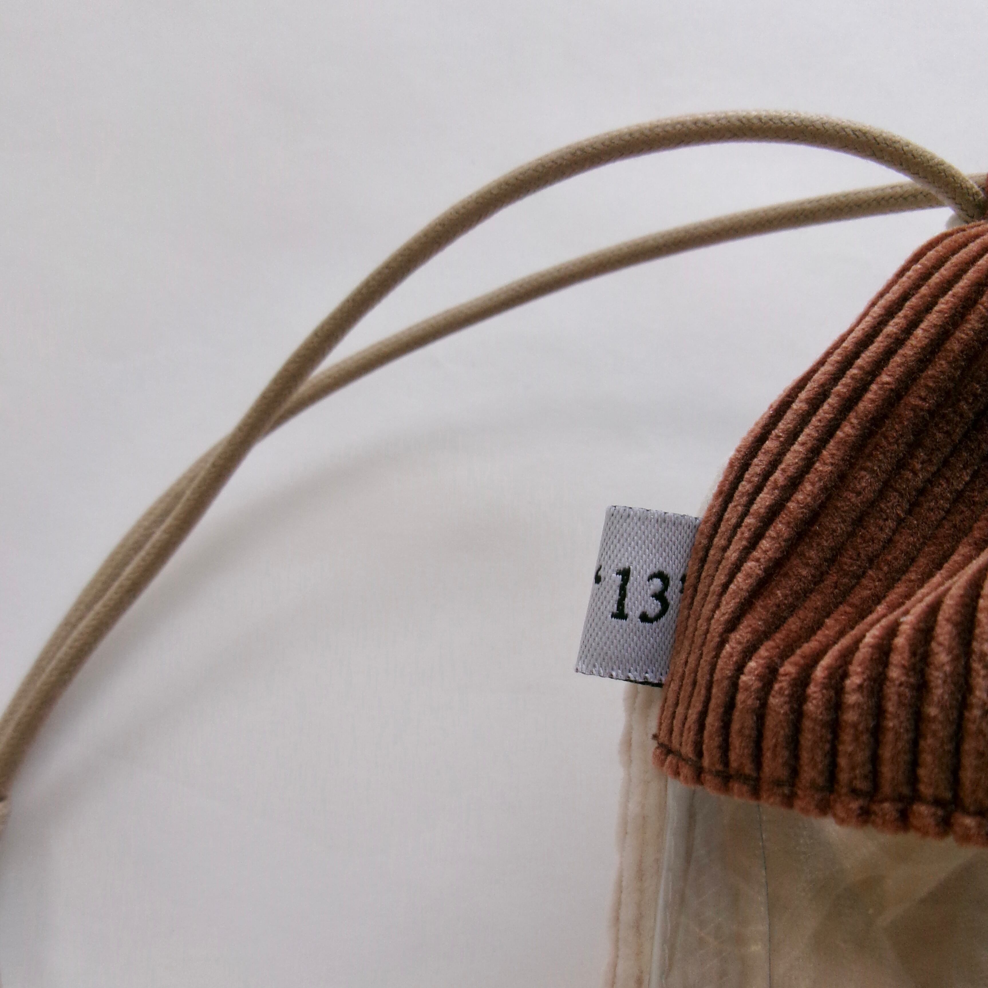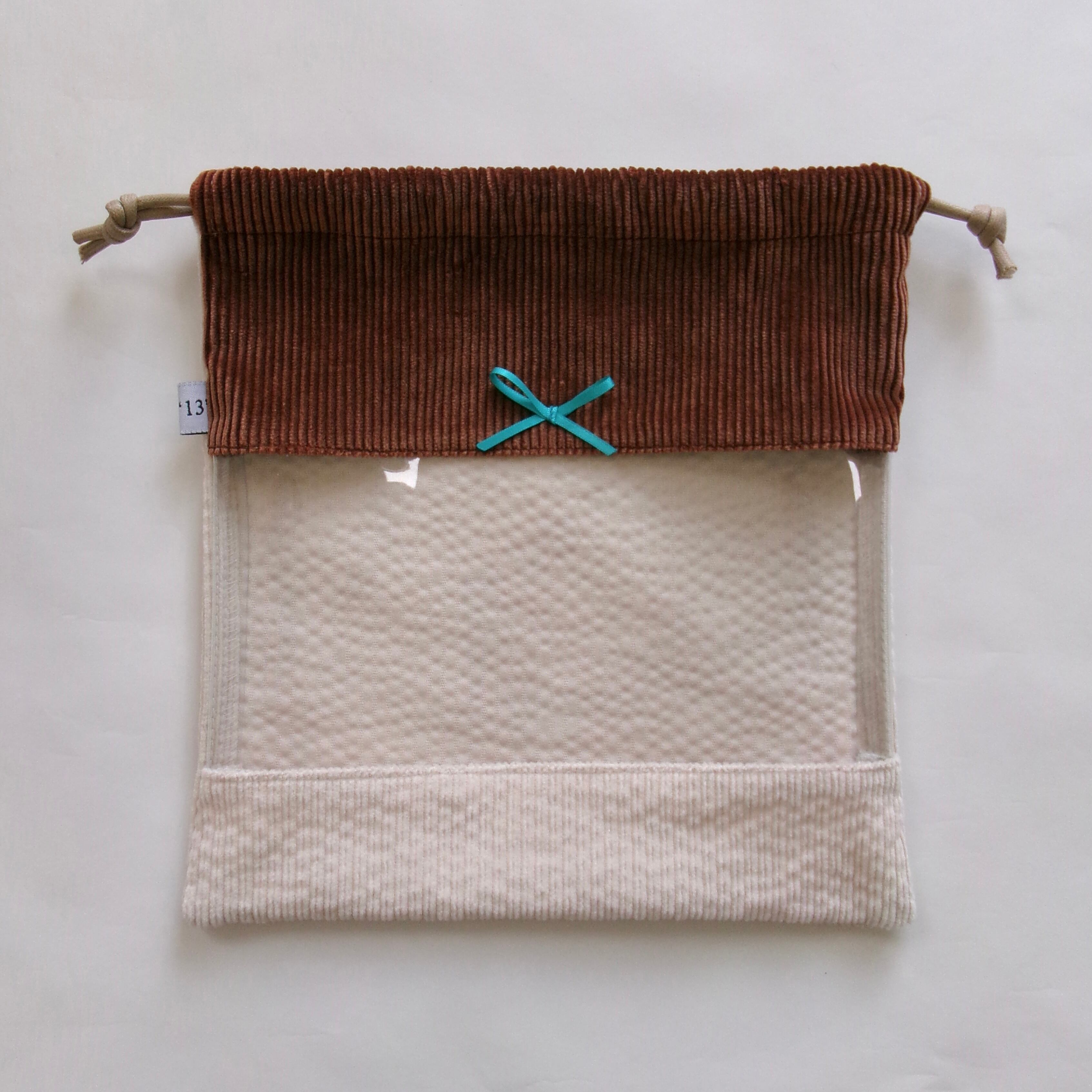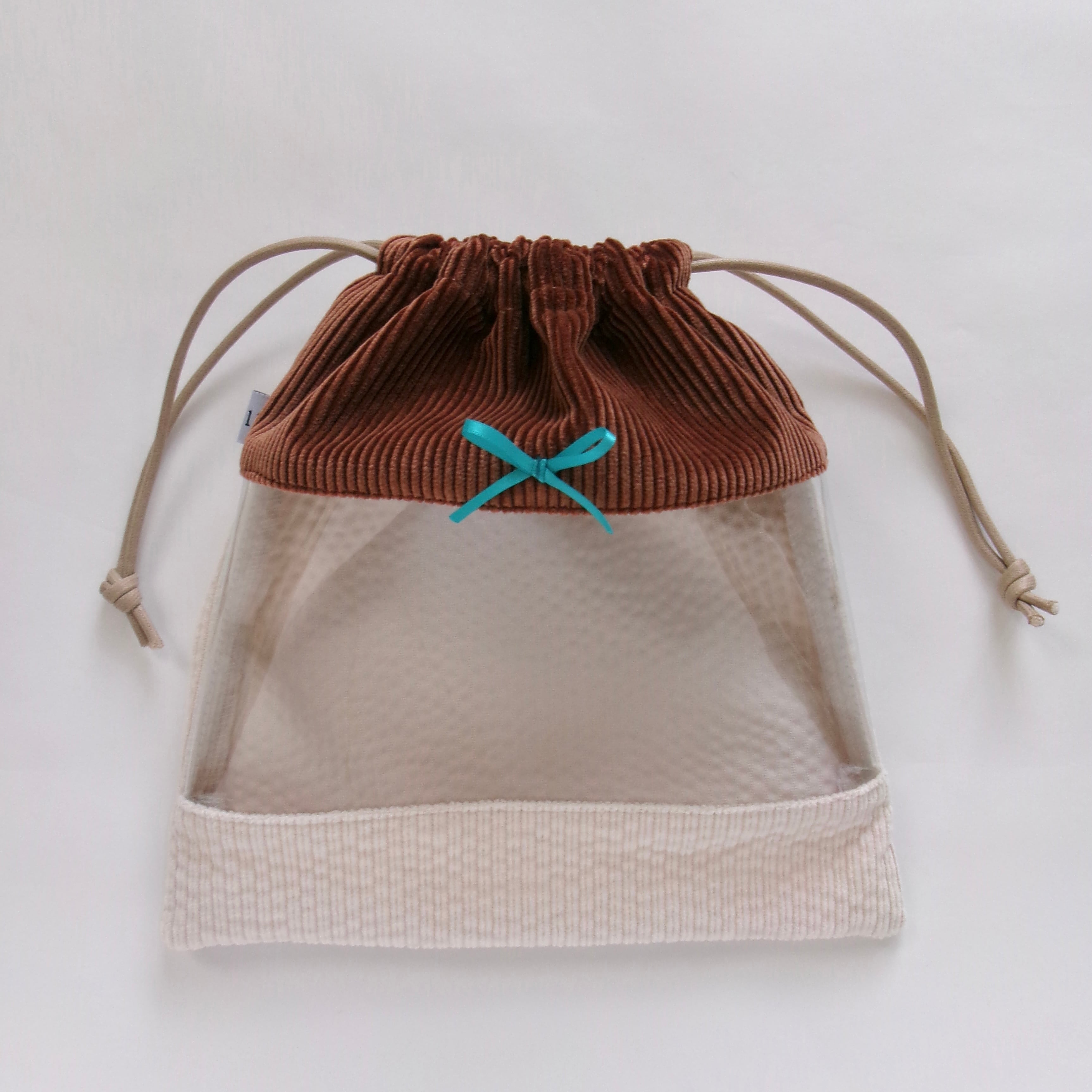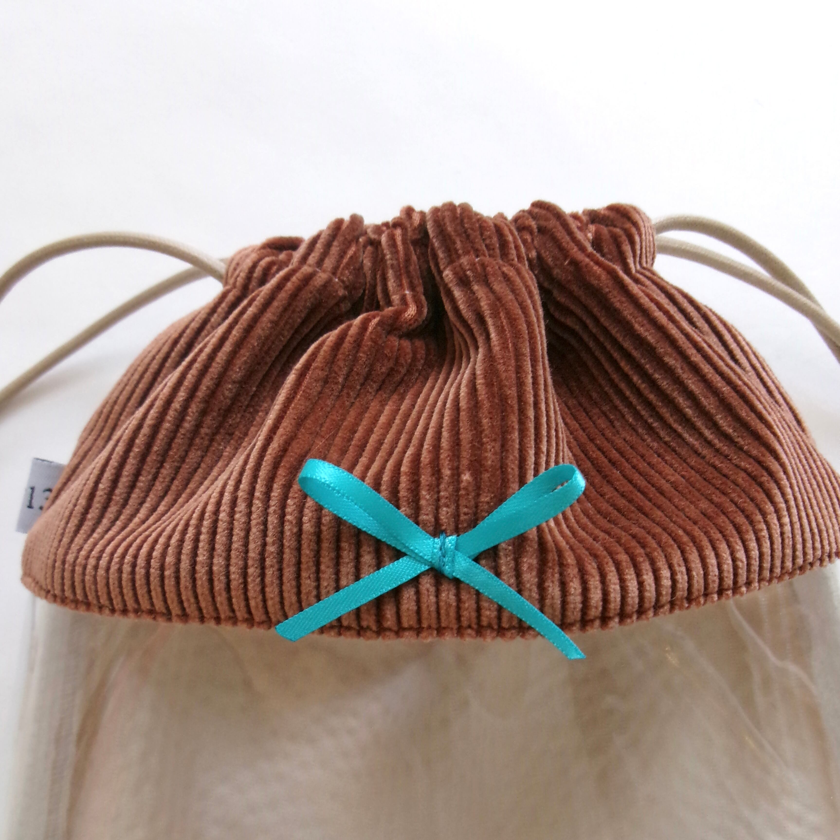 秋冬にぴったりのコーデュロイ素材でほっこりとした印象の巾着に、リボンがアクセントの巾着です*