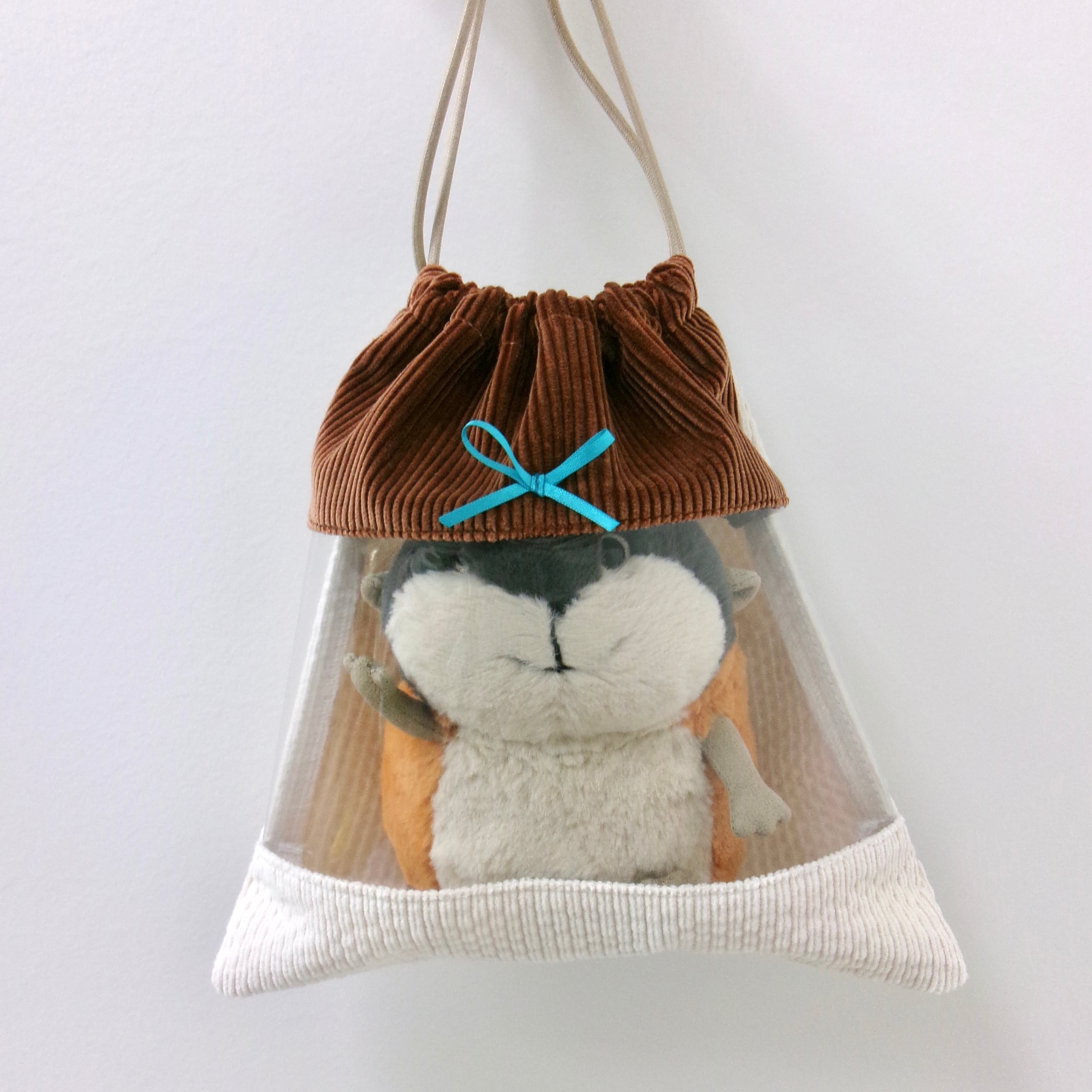 また、ぬいぐるみ以外の小物入れにしても巾着を開けずに中身を確認できて便利です◎