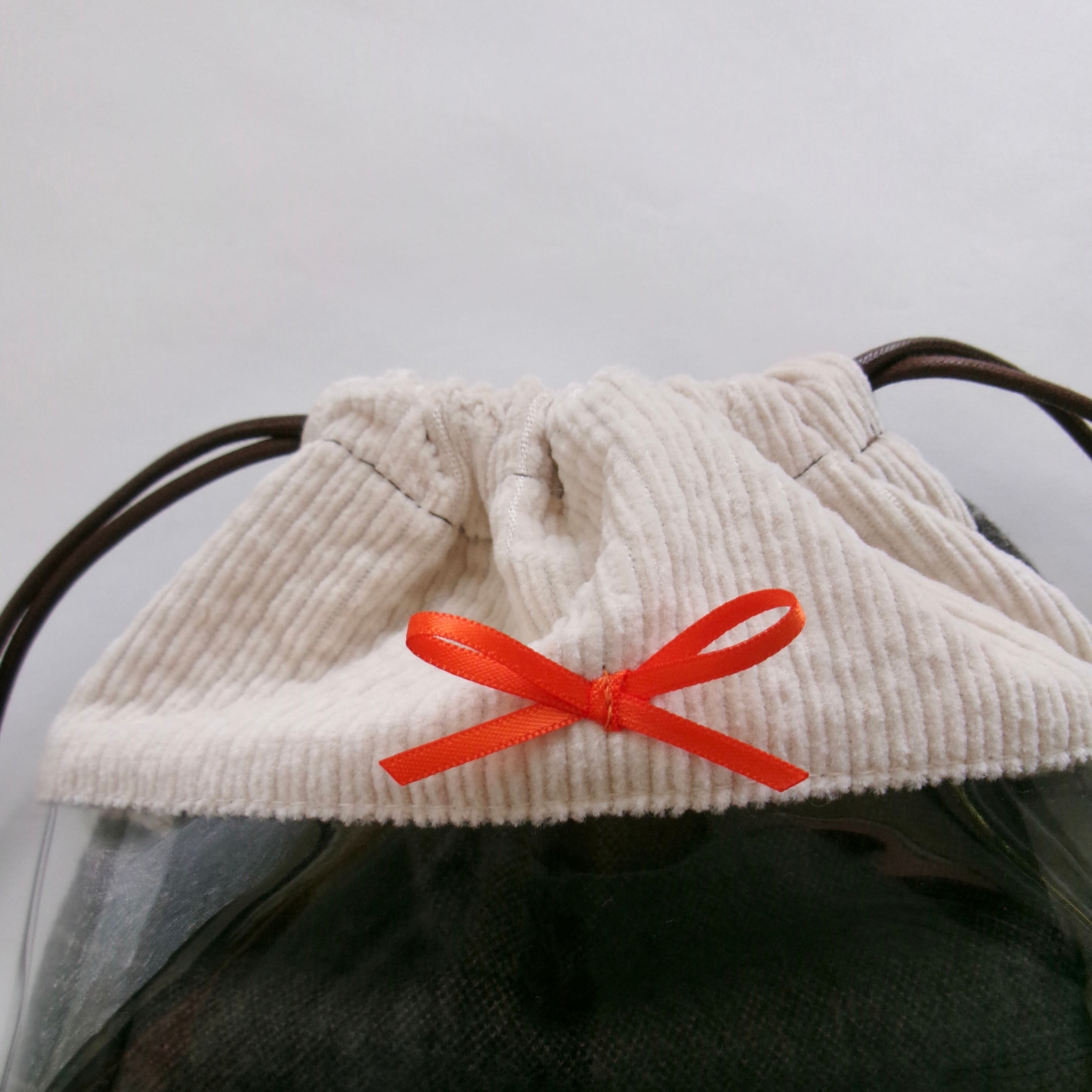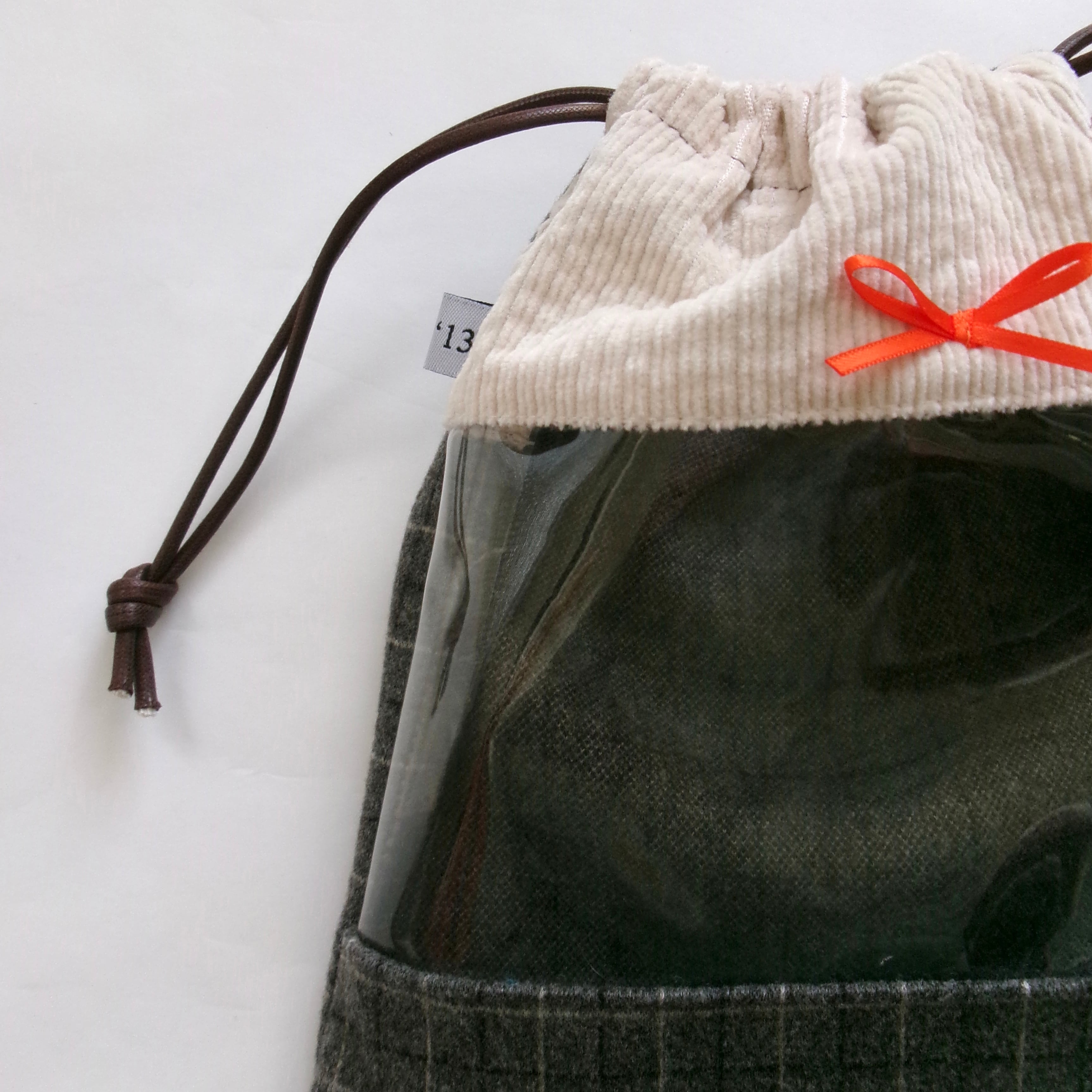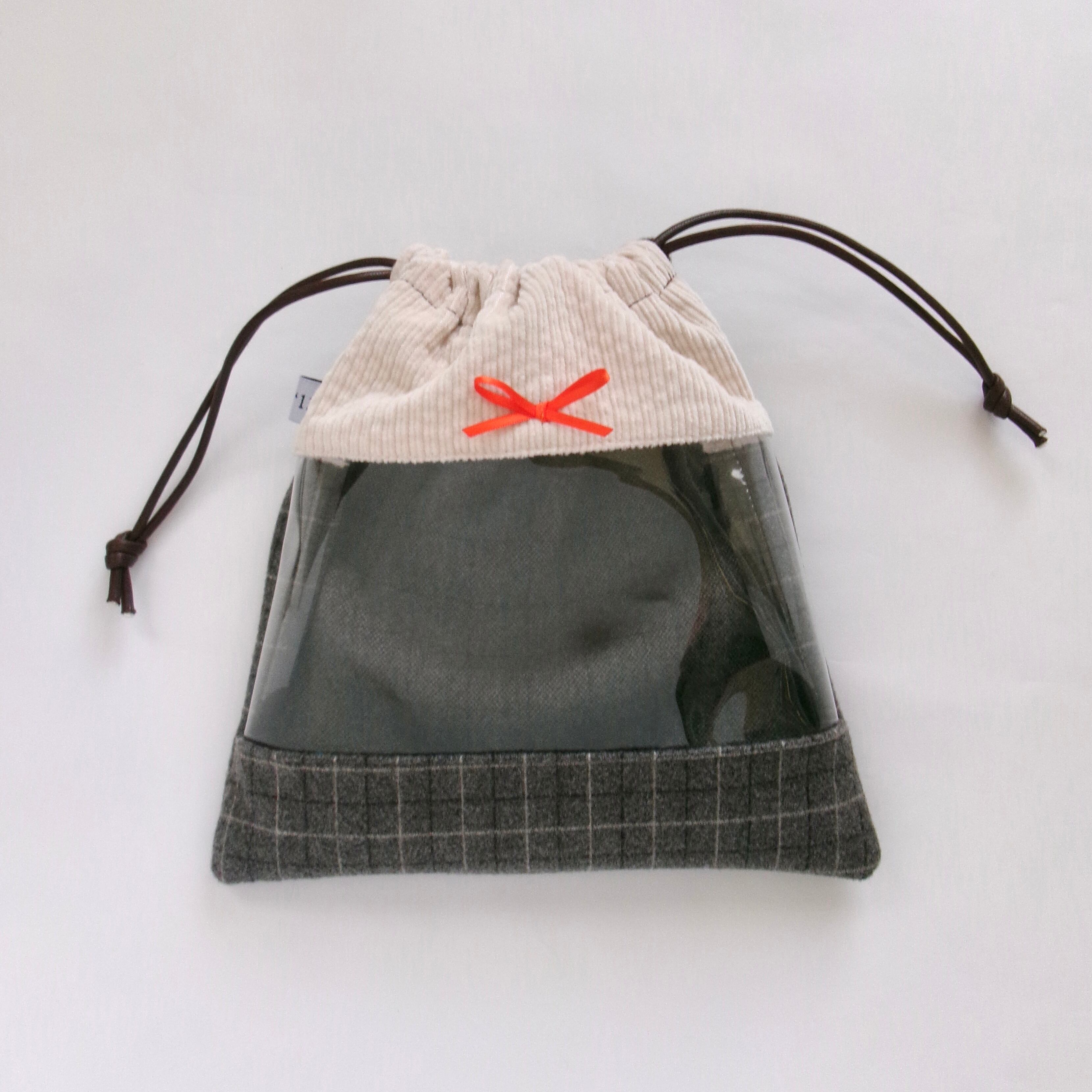 秋冬にぴったりのコーデュロイ素材と起毛のチェック柄生地のほっこりとした印象の巾着に、リボンがアクセントの巾着です*