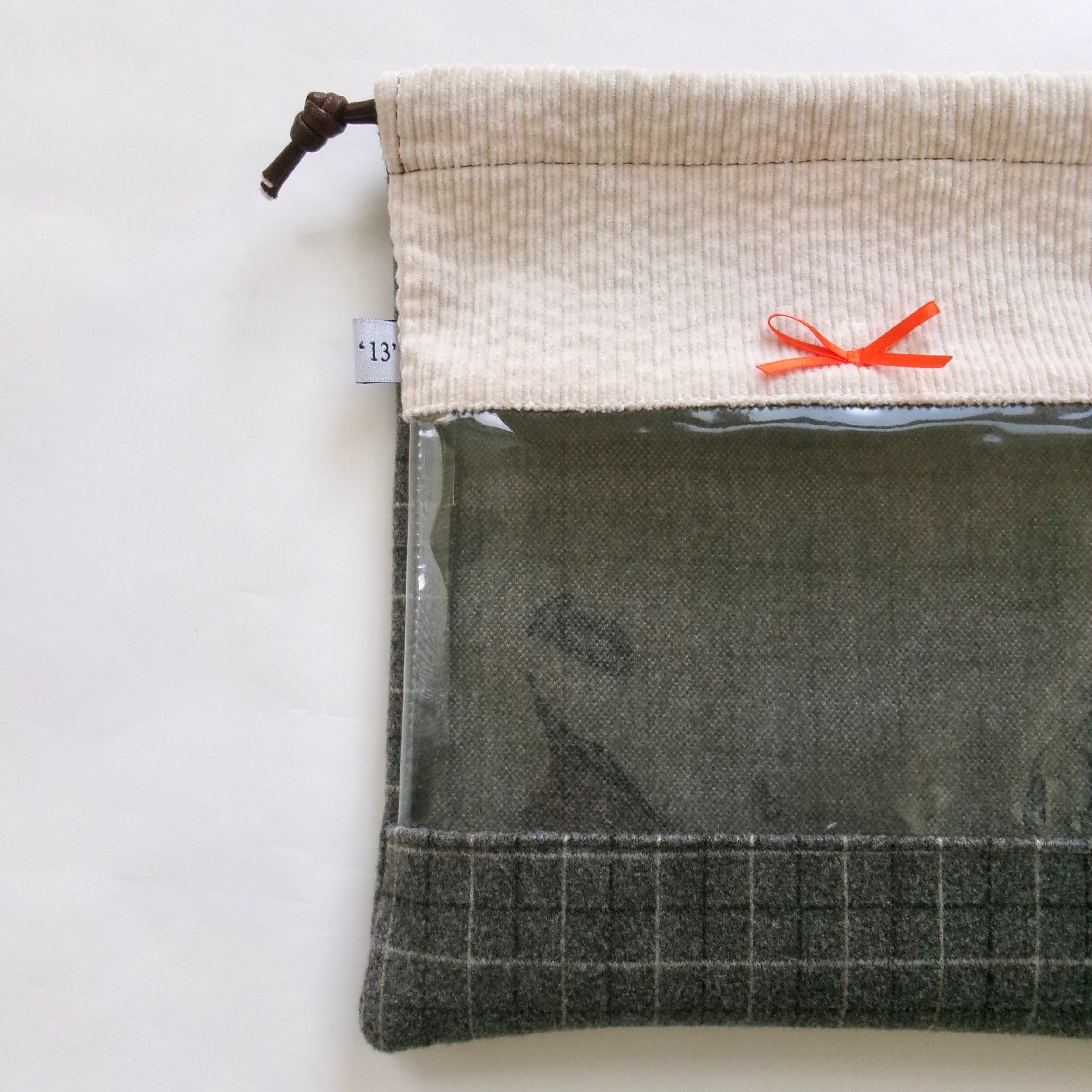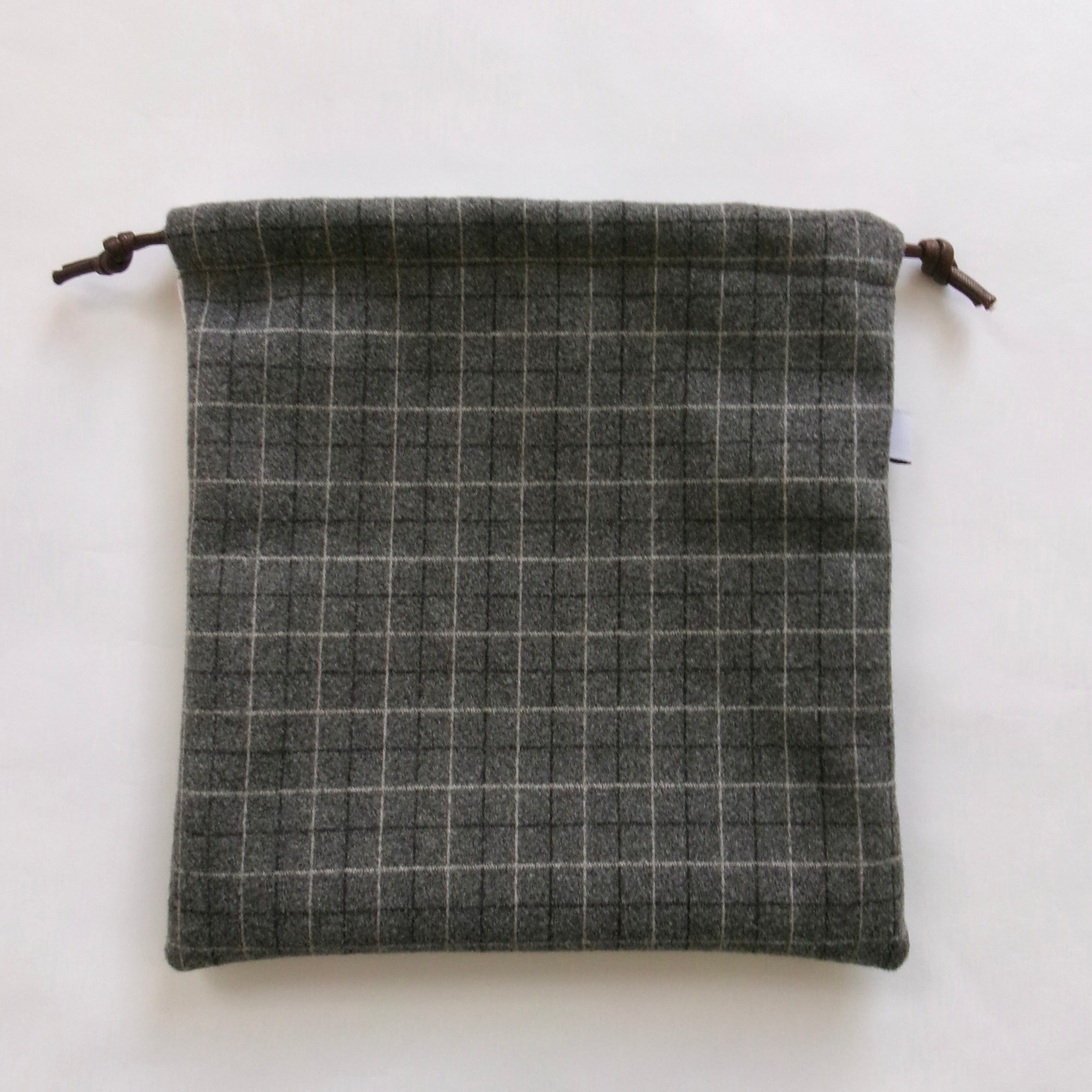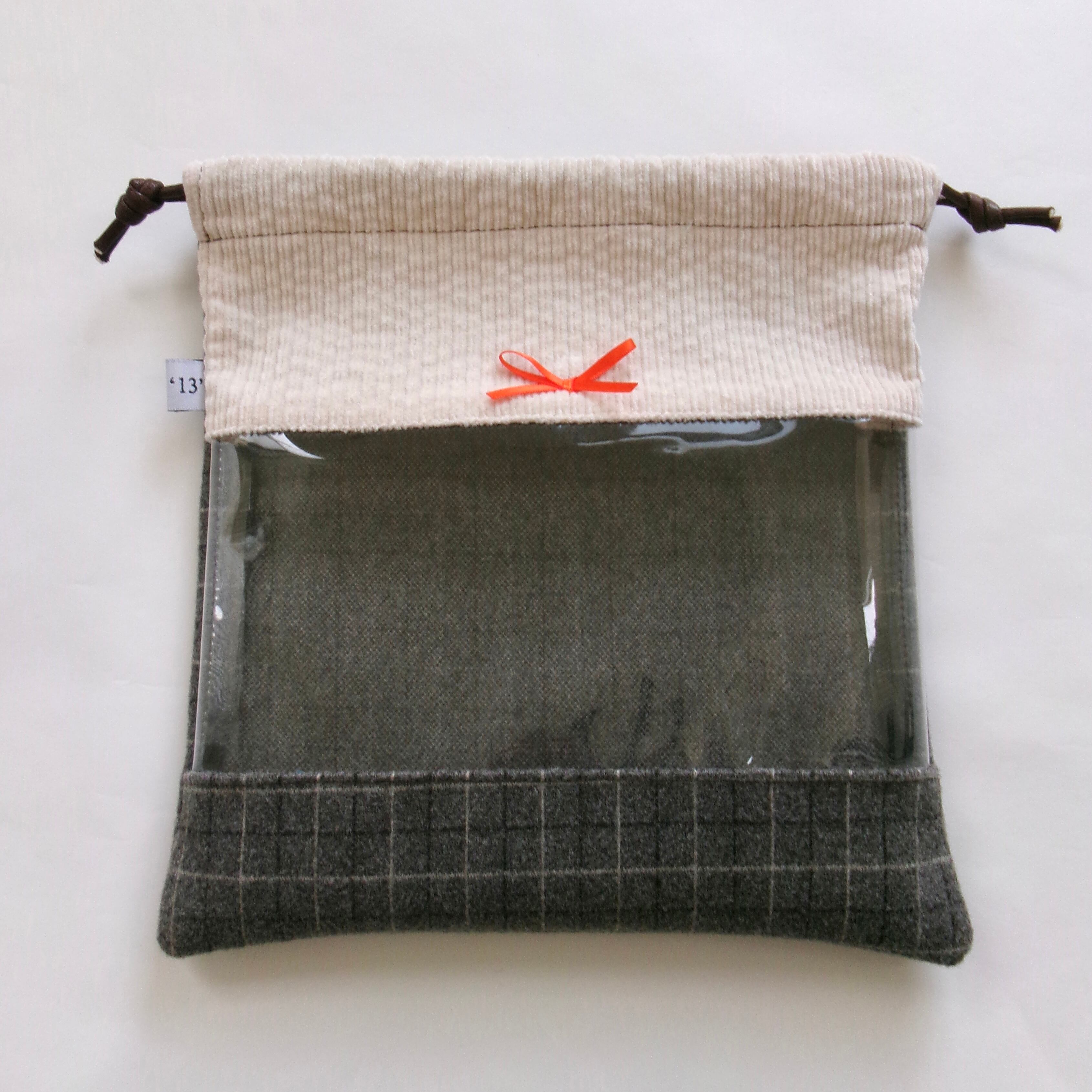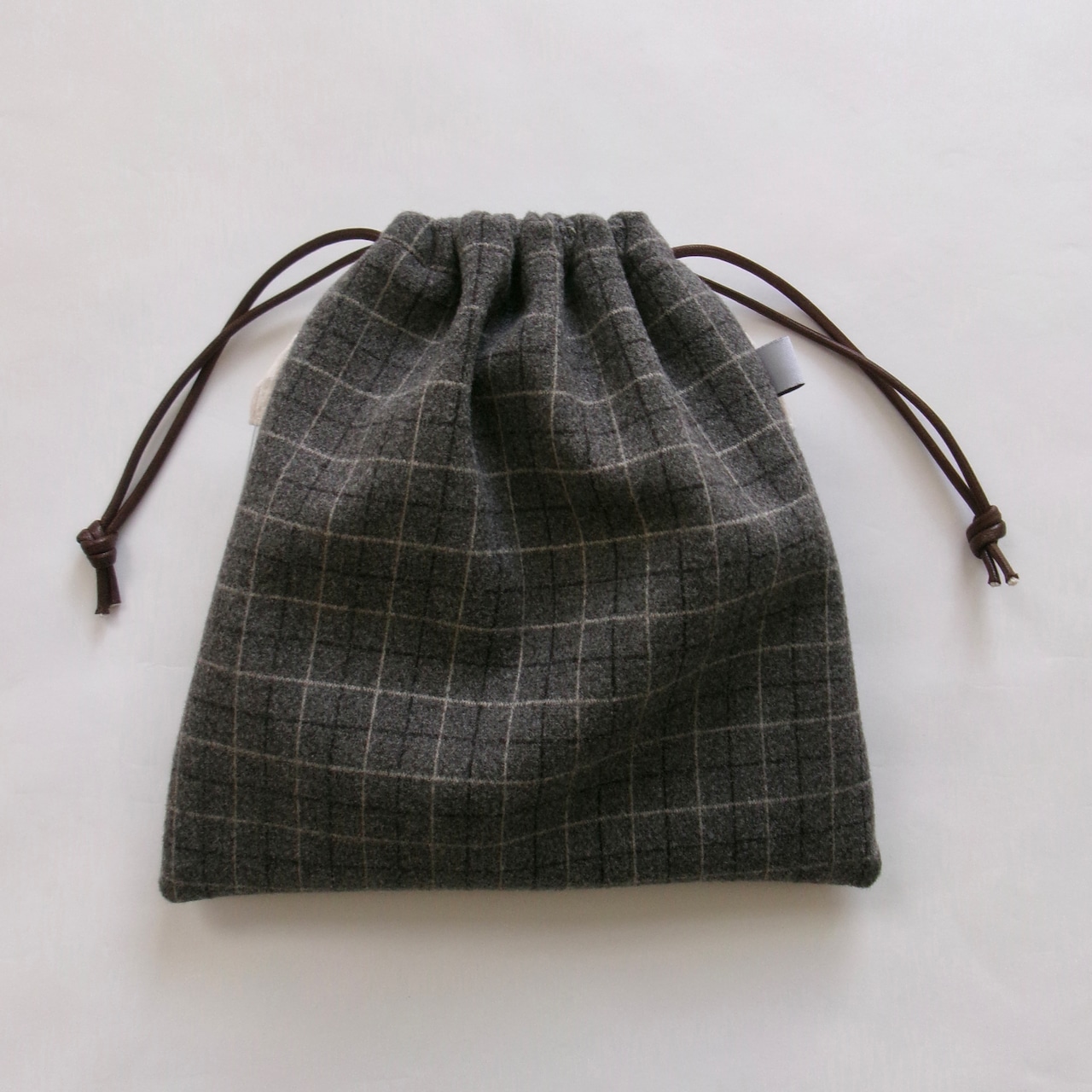 秋冬にぴったりのコーデュロイ素材と起毛のチェック柄生地のほっこりとした印象の巾着に、リボンがアクセントの巾着です*
