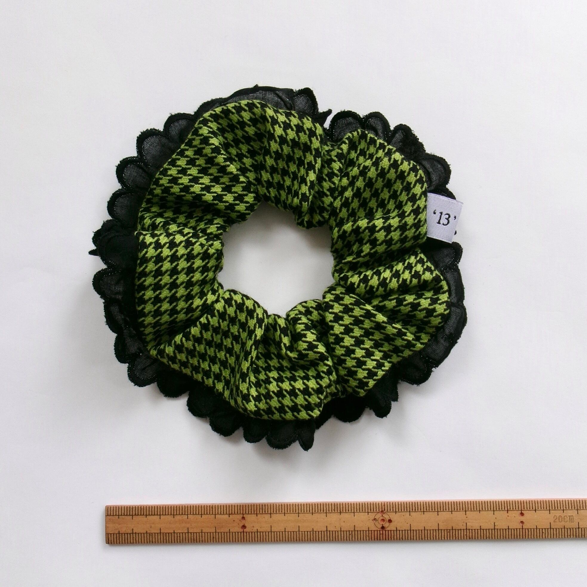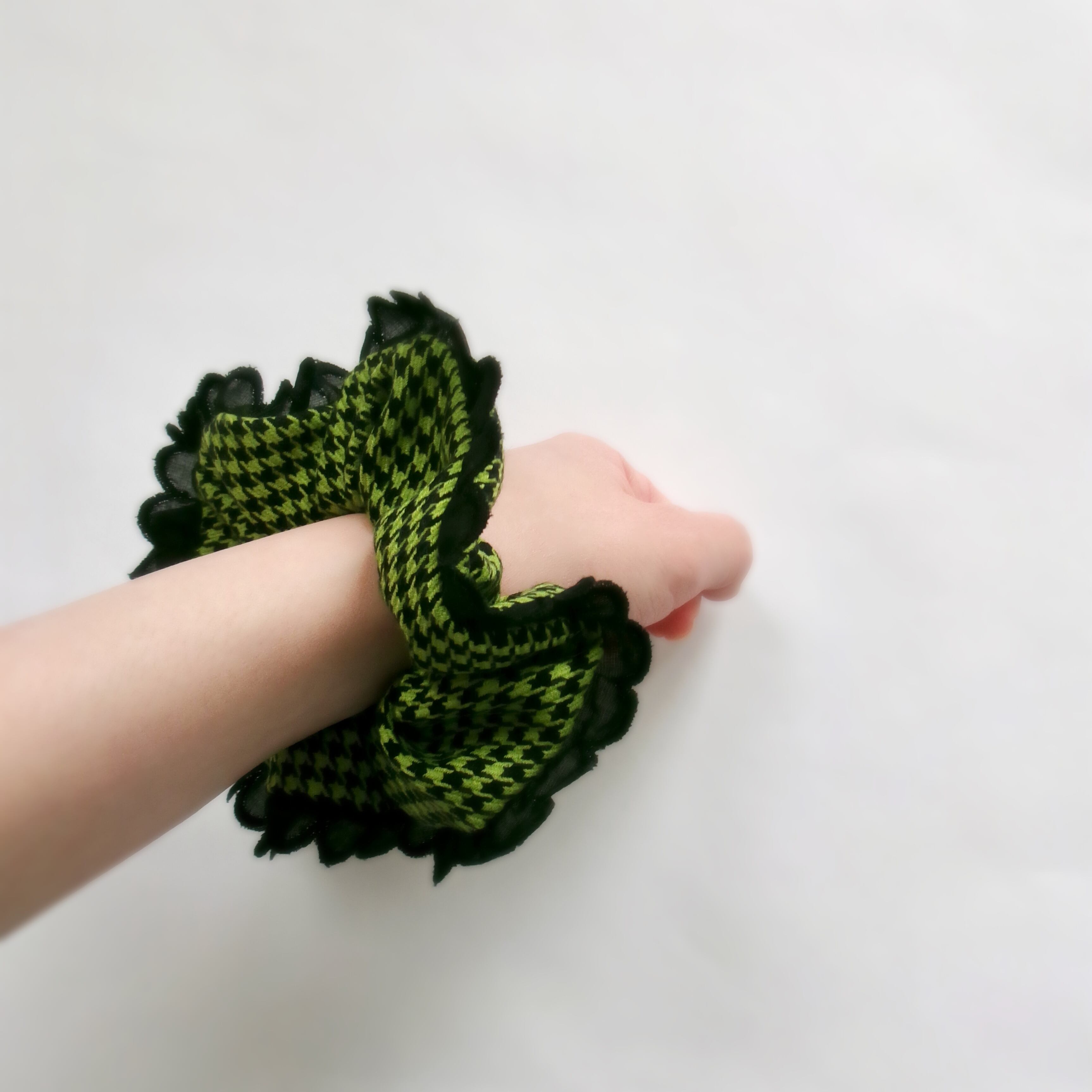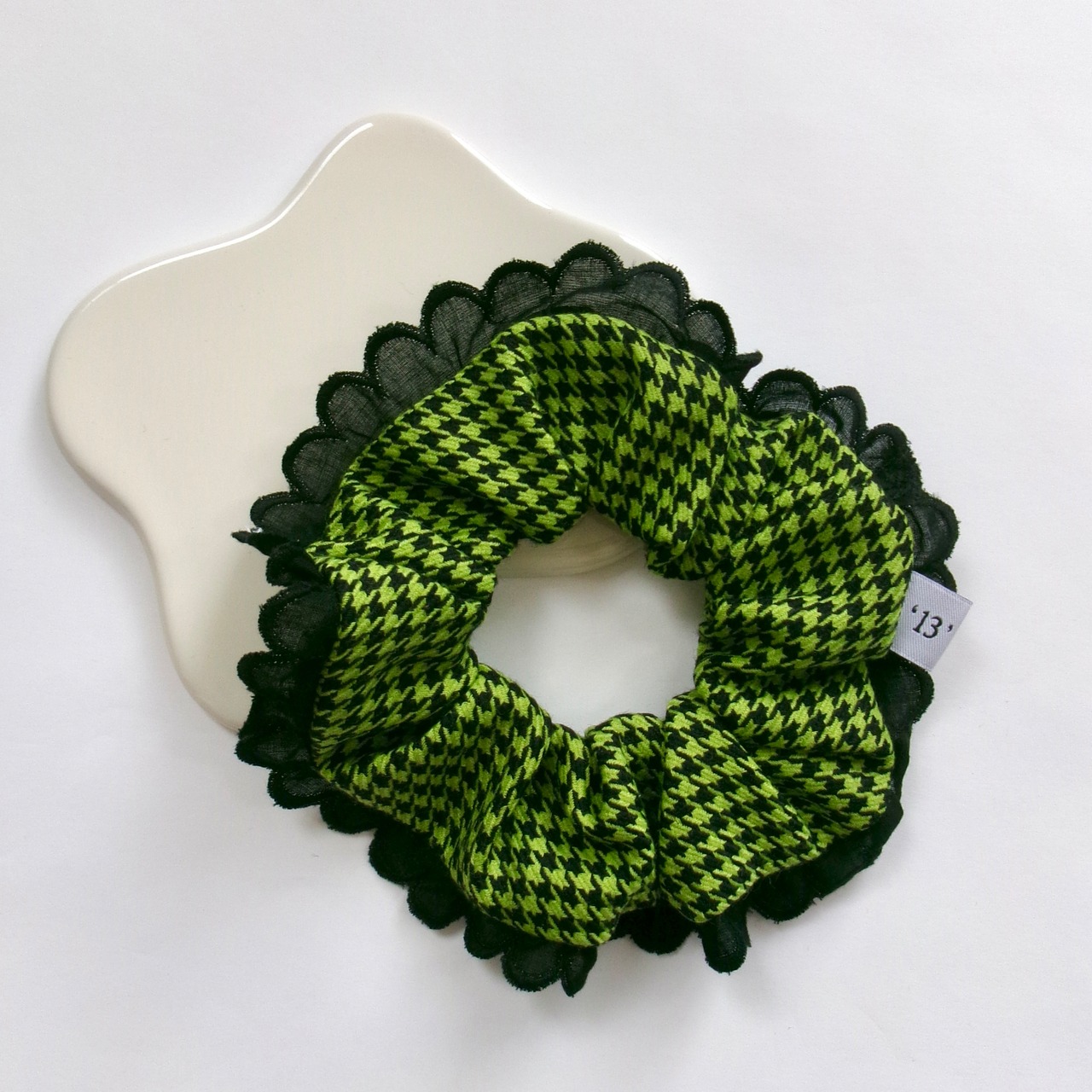 鮮やかな黄緑色が特徴の千鳥格子生地を使用したシュシュです*