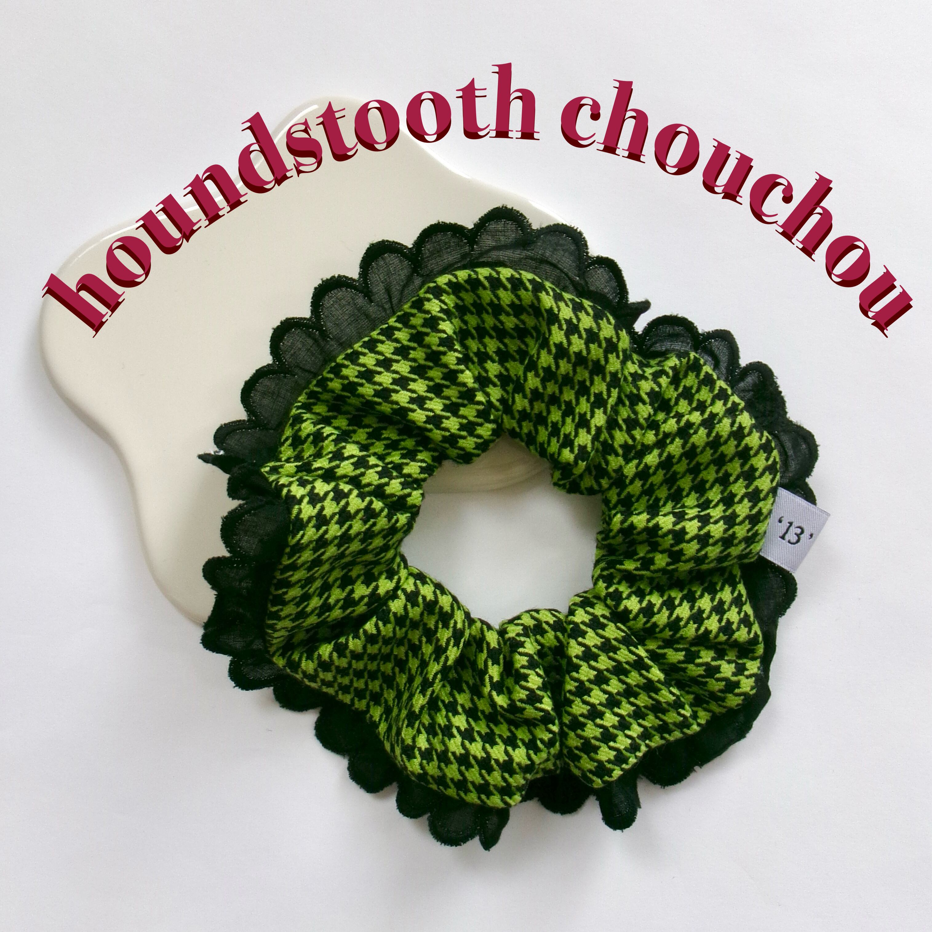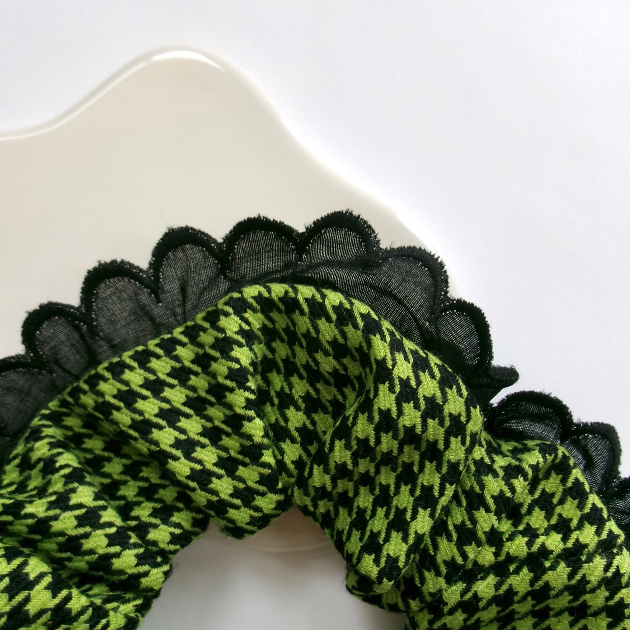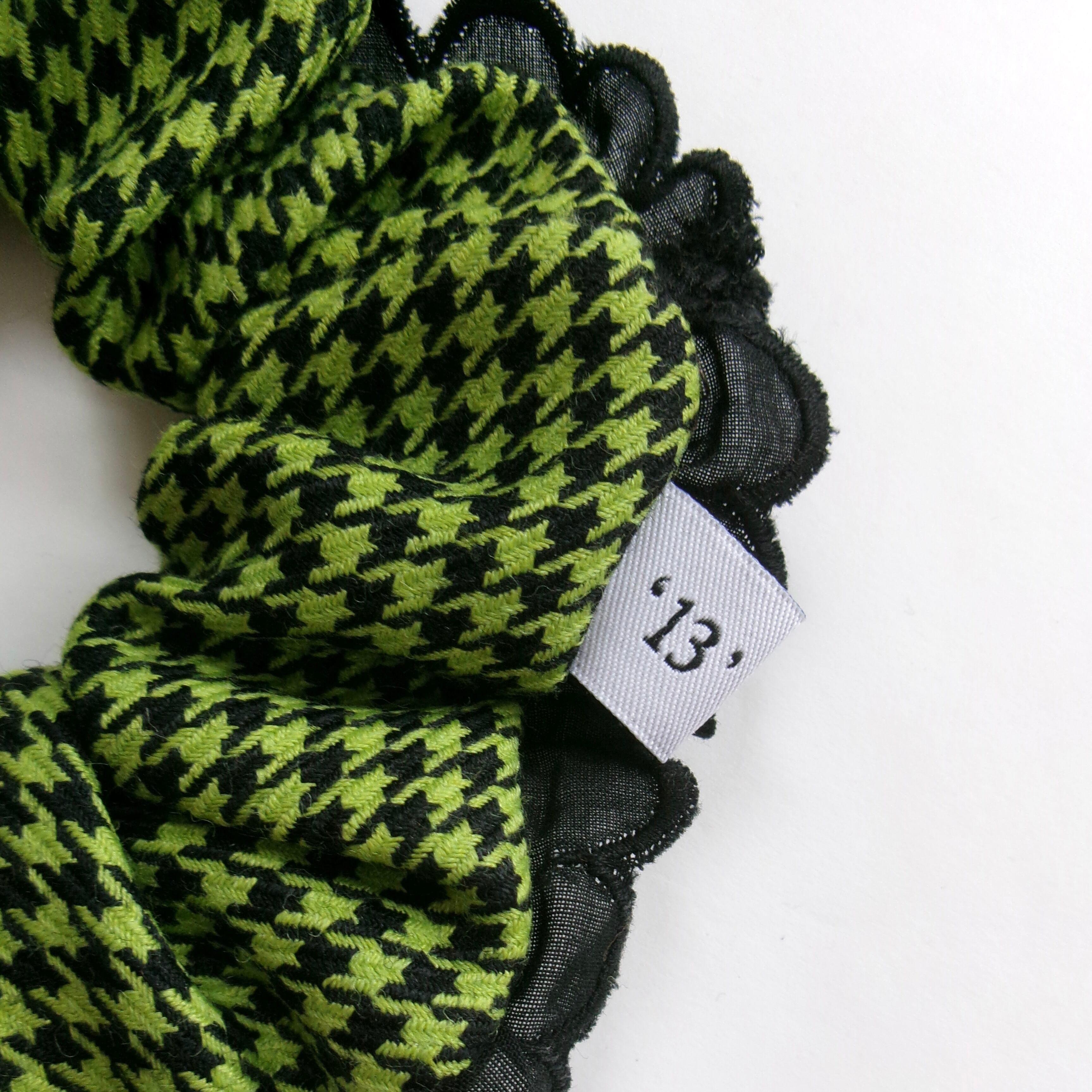鮮やかな黄緑色が特徴の千鳥格子生地を使用したシュシュです*