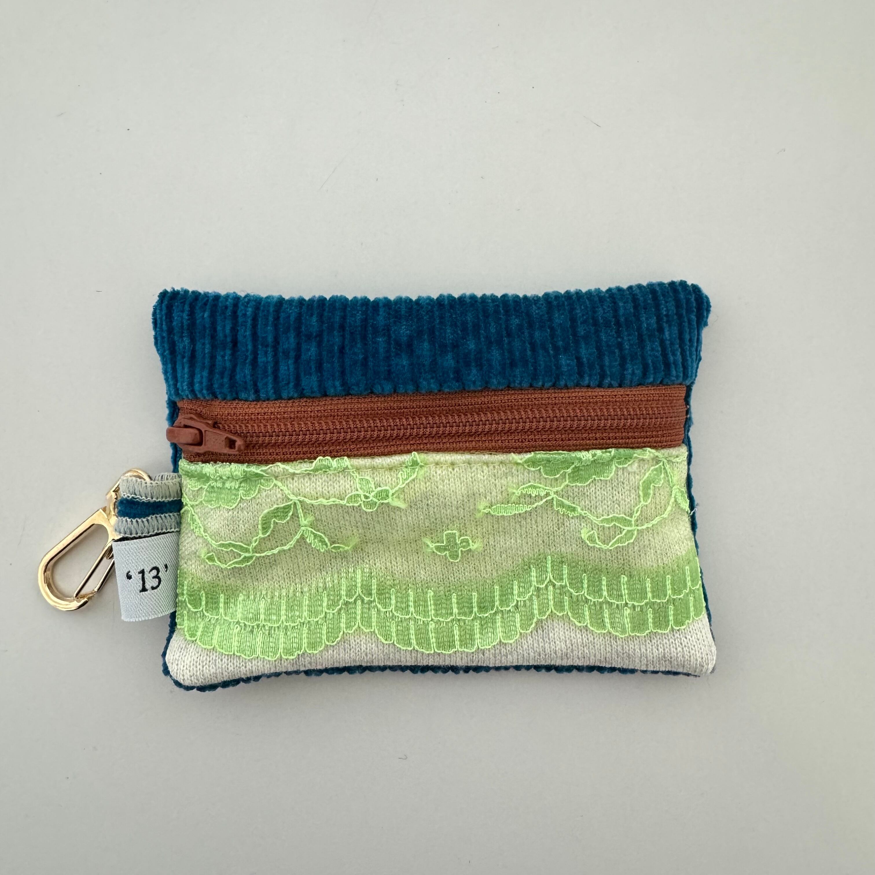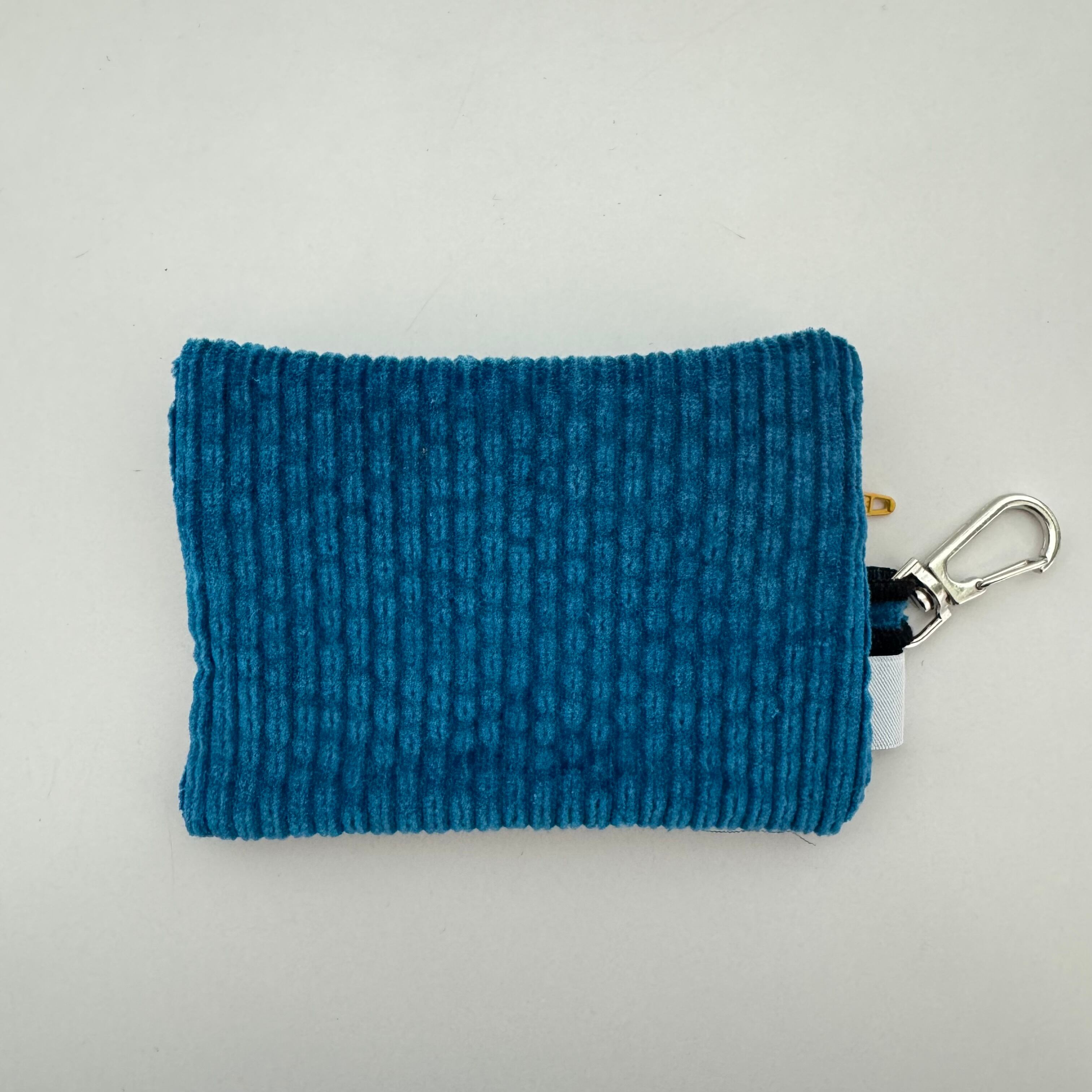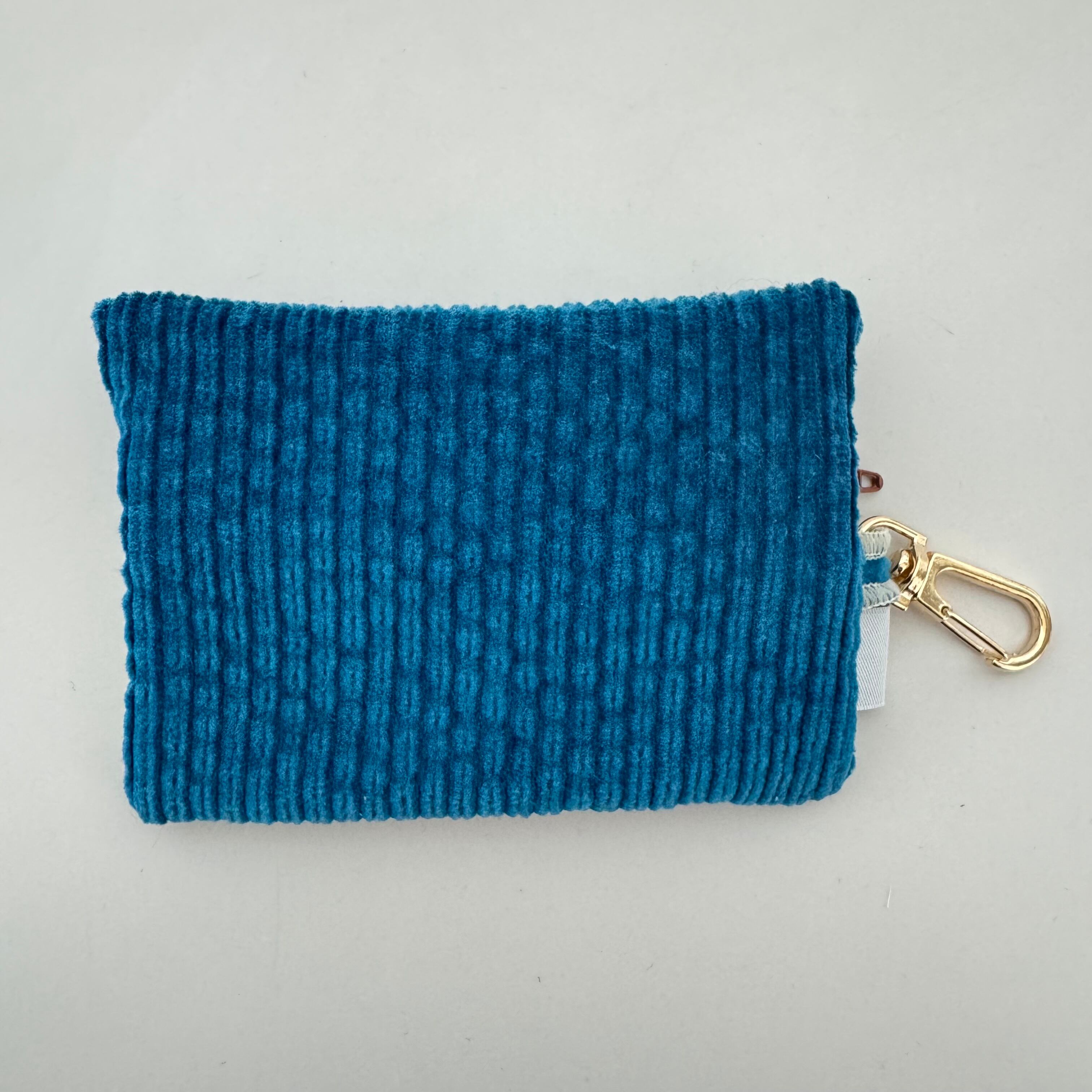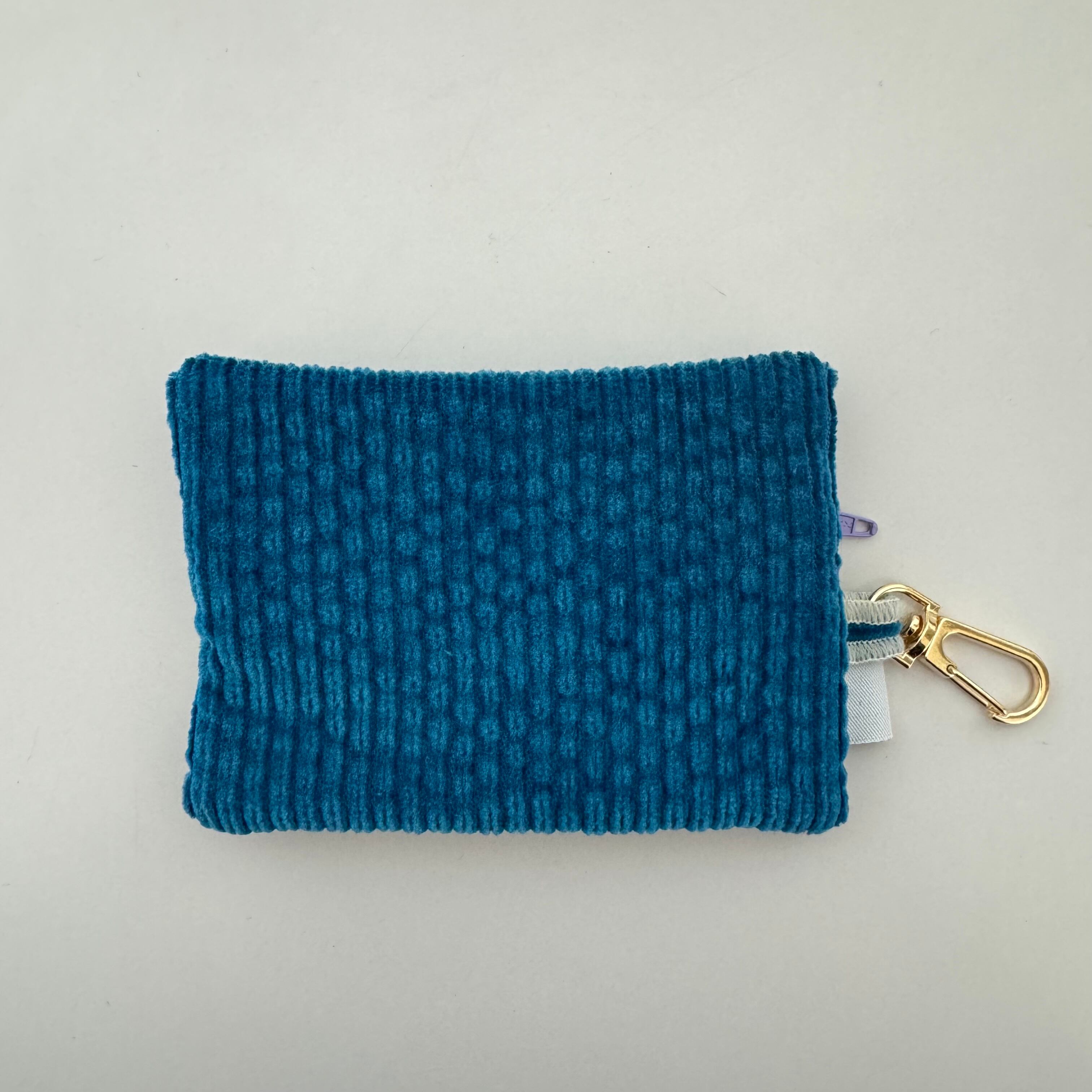 ブルーカラーのコーデュロイ生地のミニポーチです