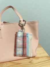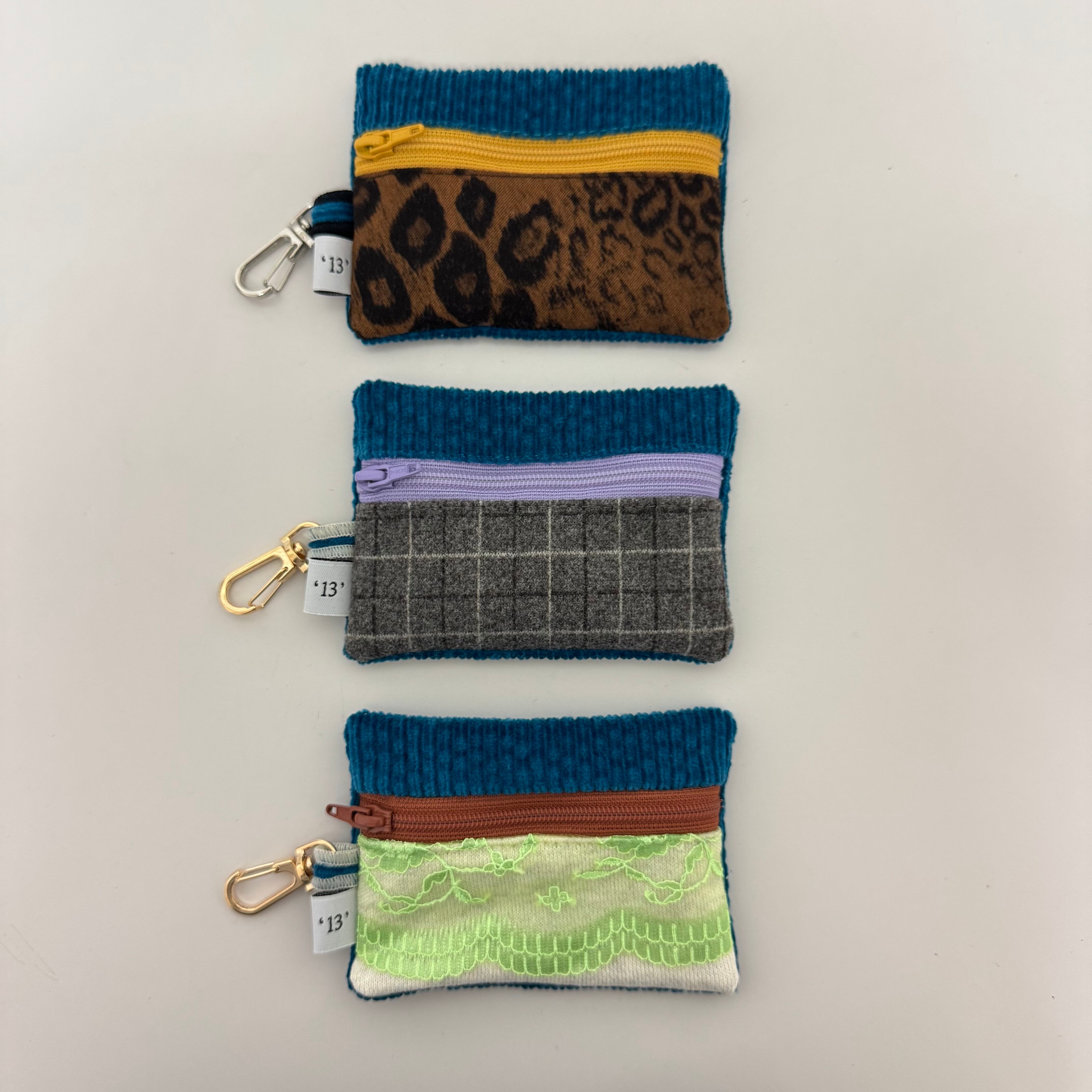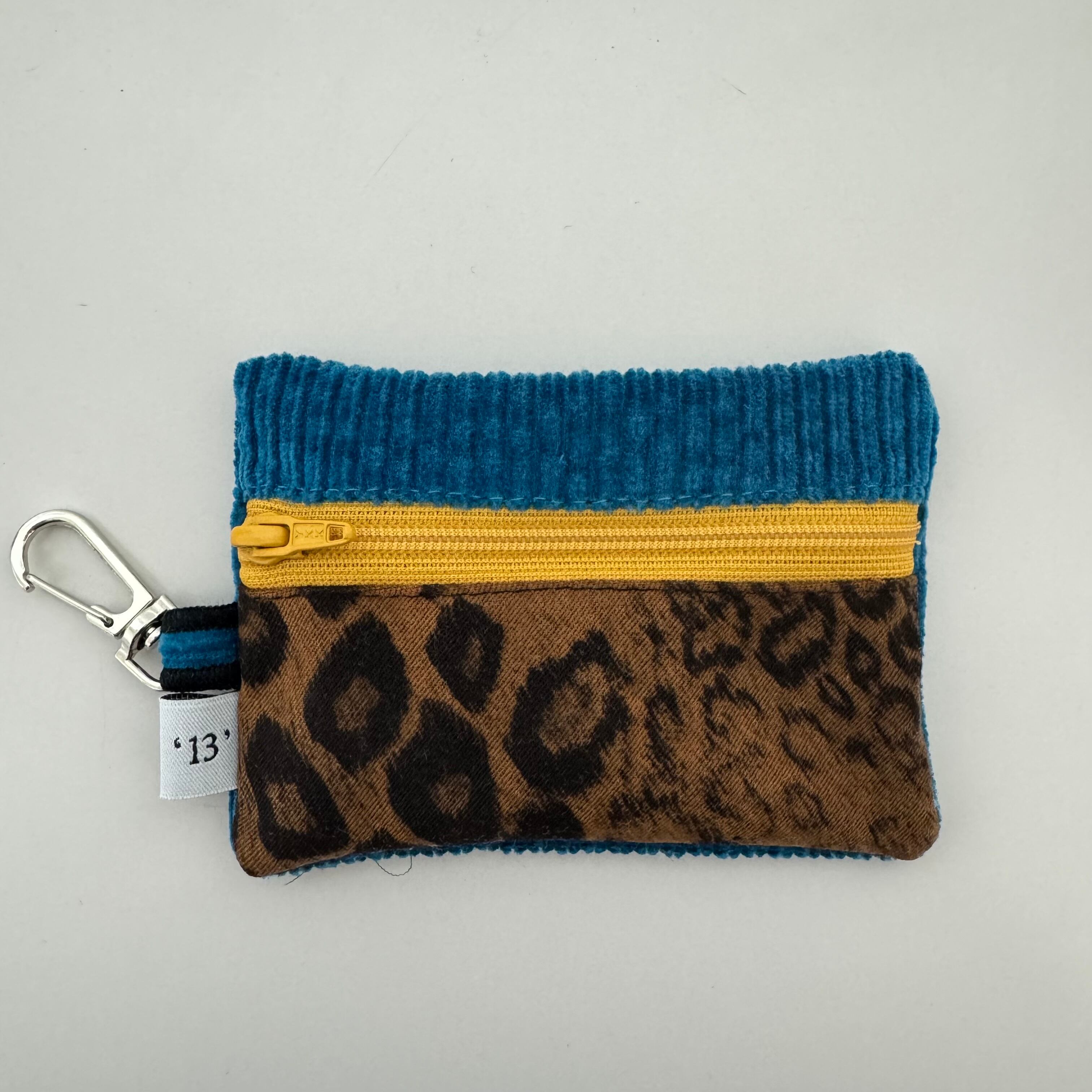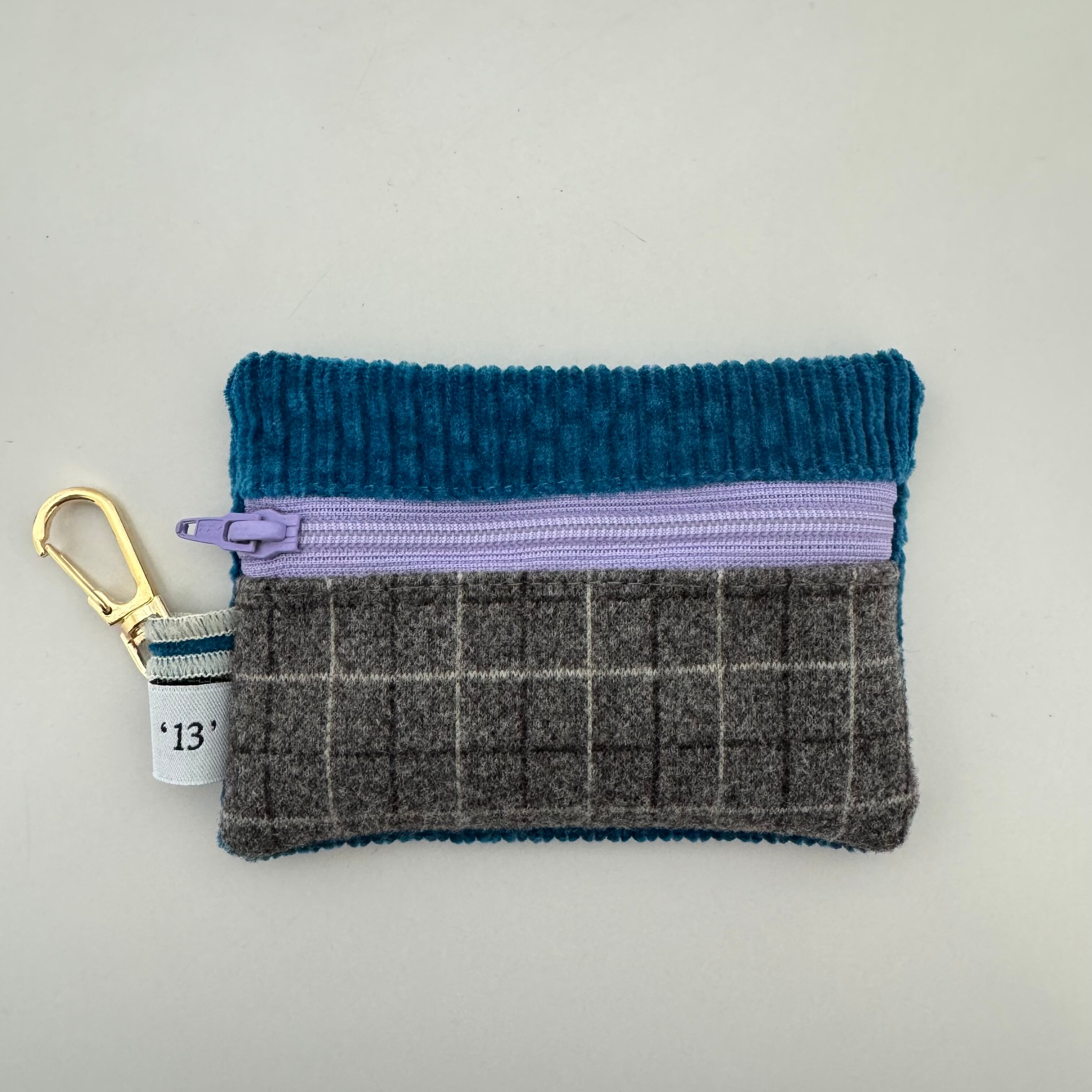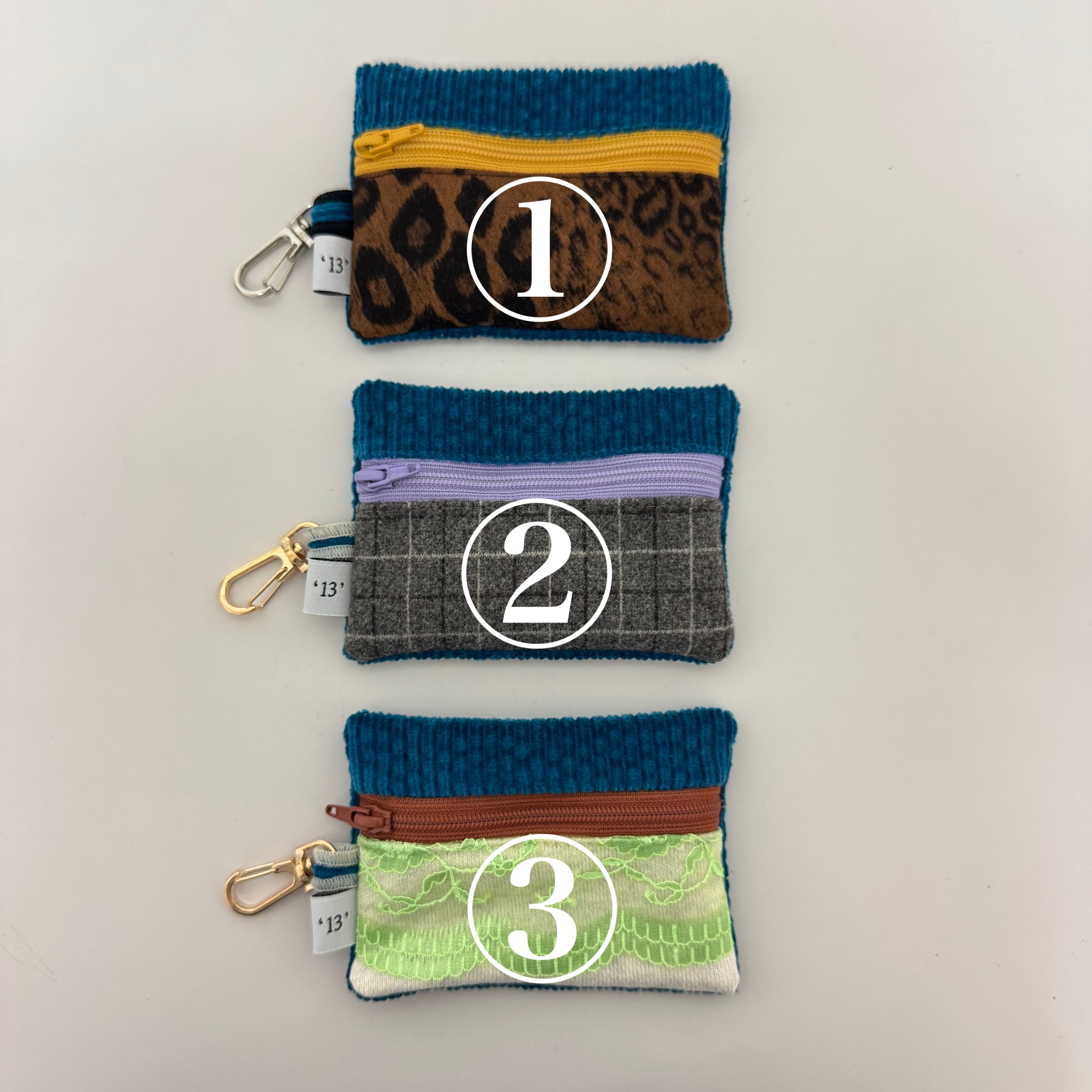 ブルーカラーのコーデュロイ生地のミニポーチです