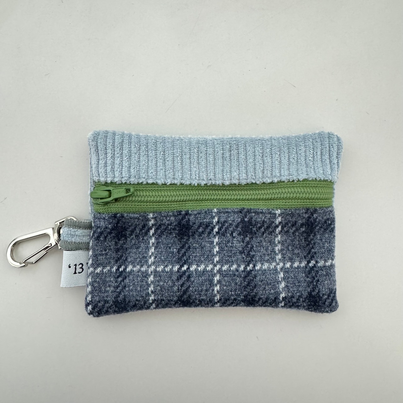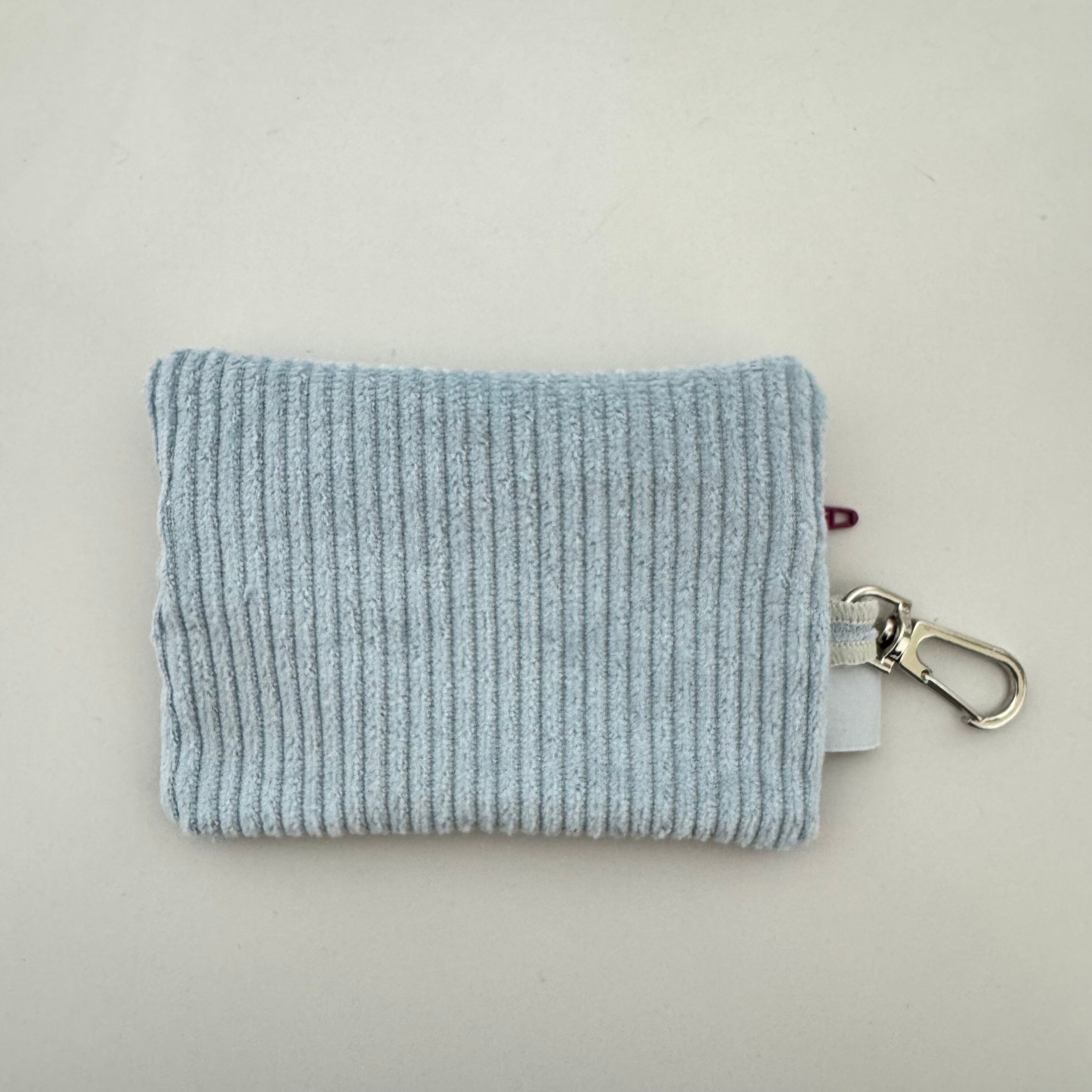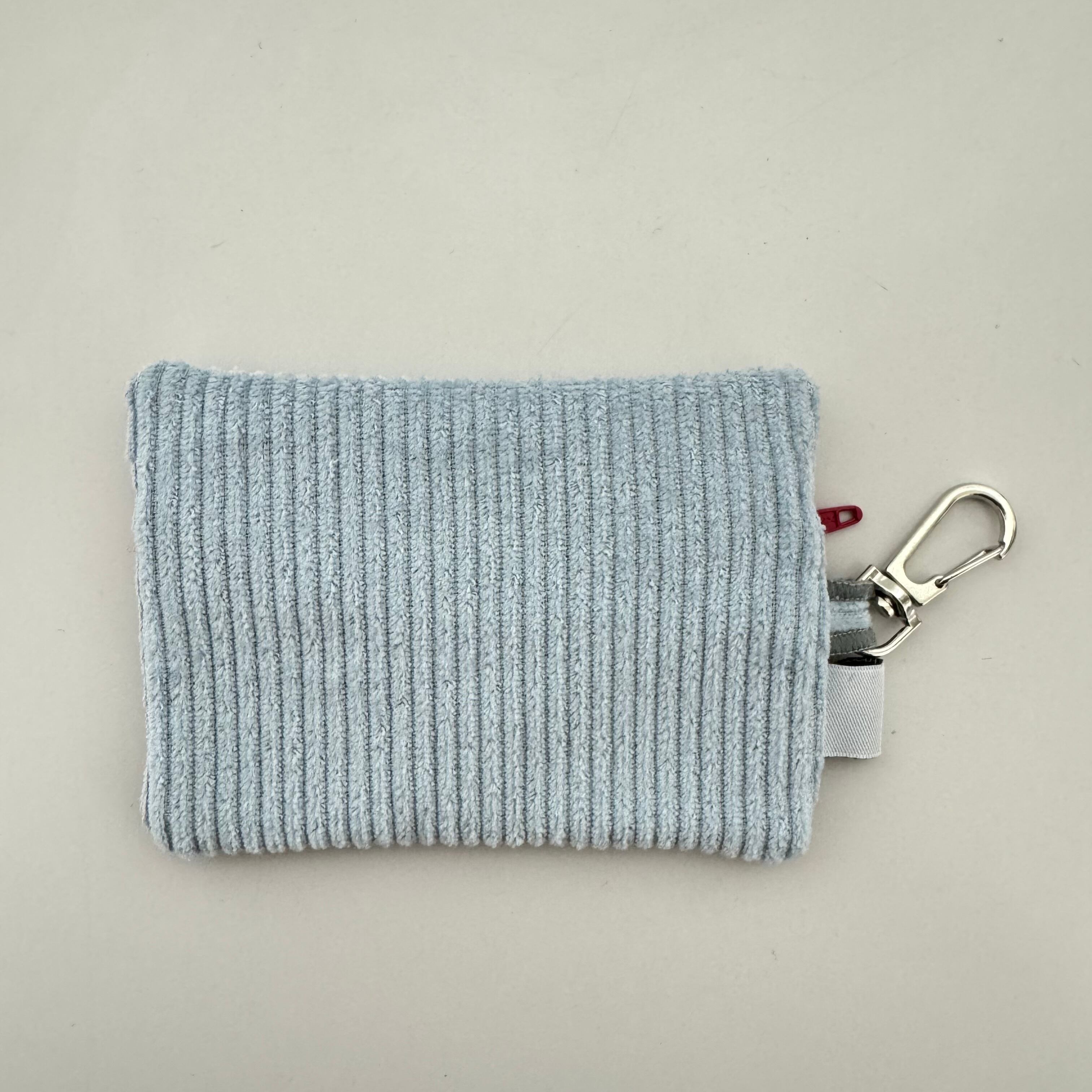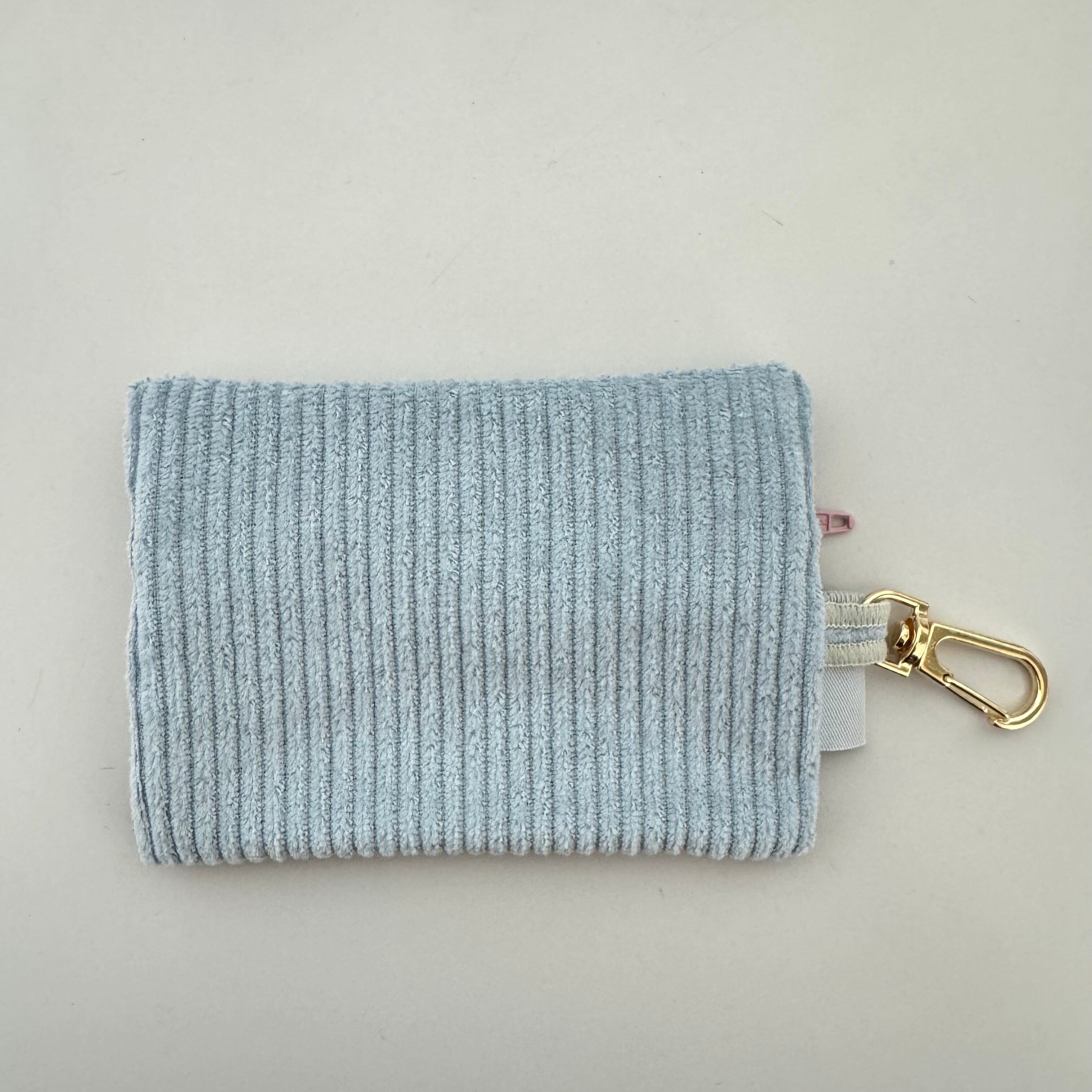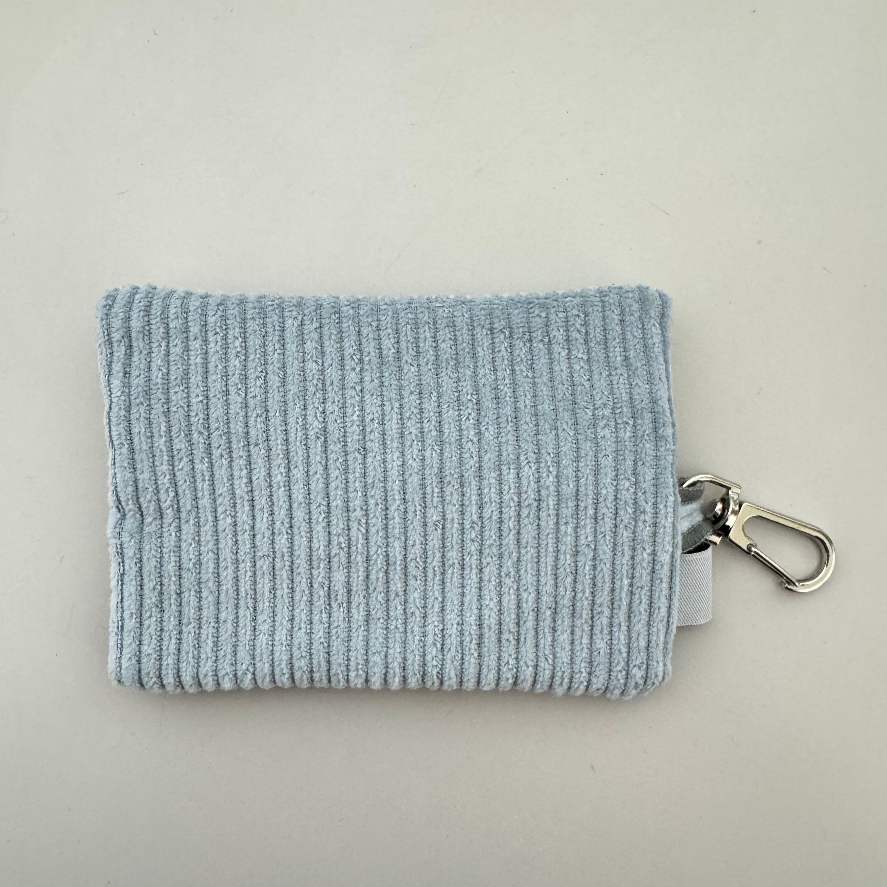 ライトブルーカラーのコーデュロイ生地のミニポーチです