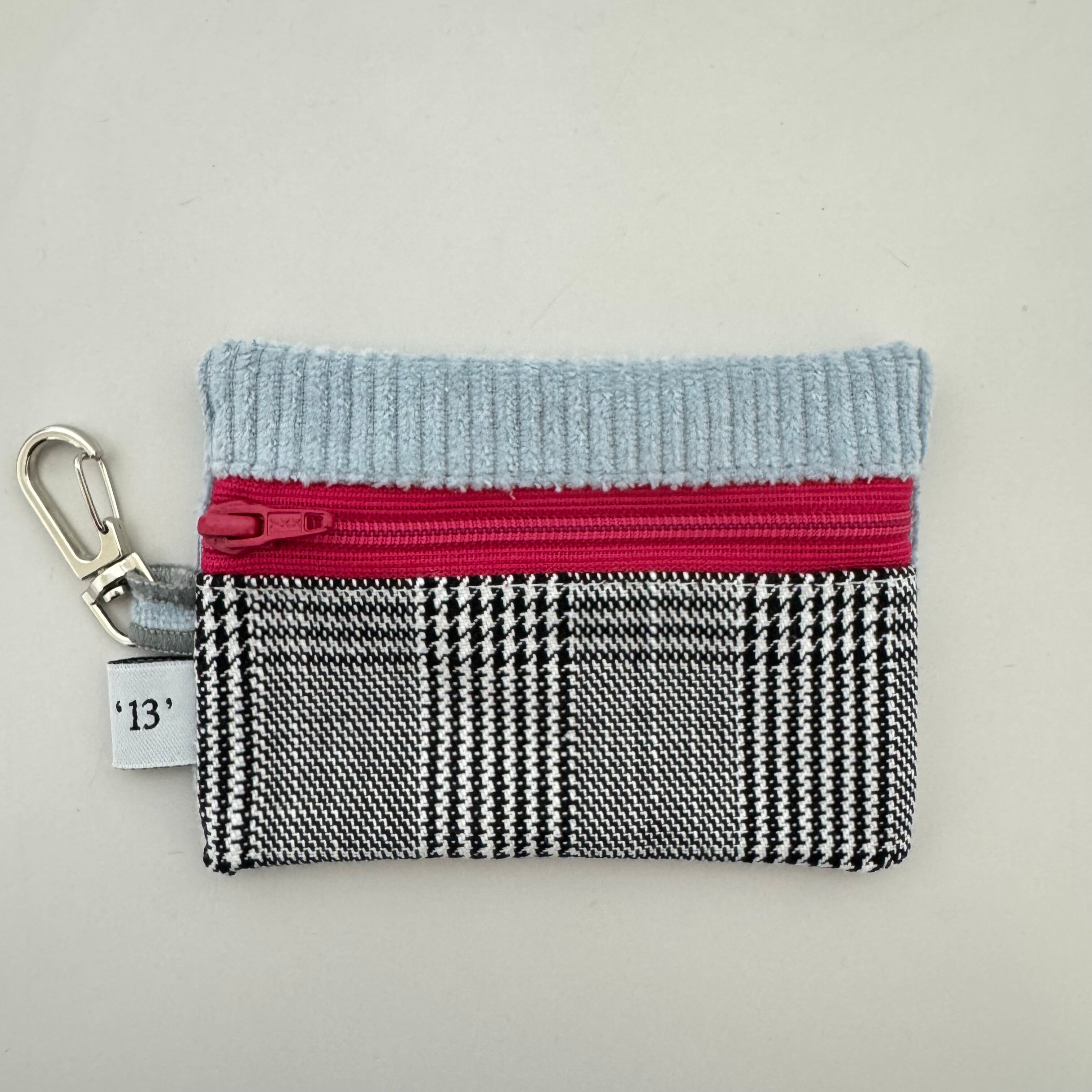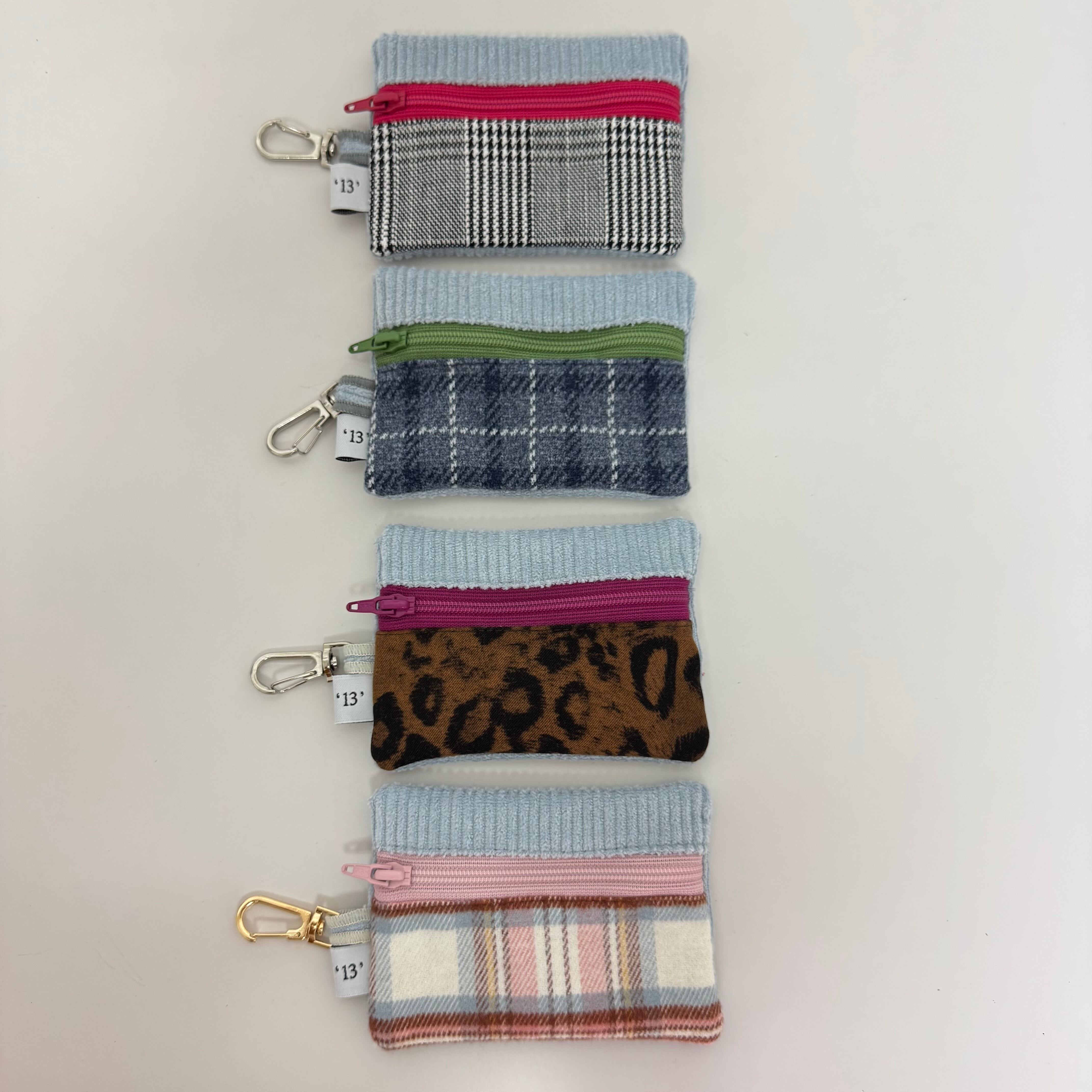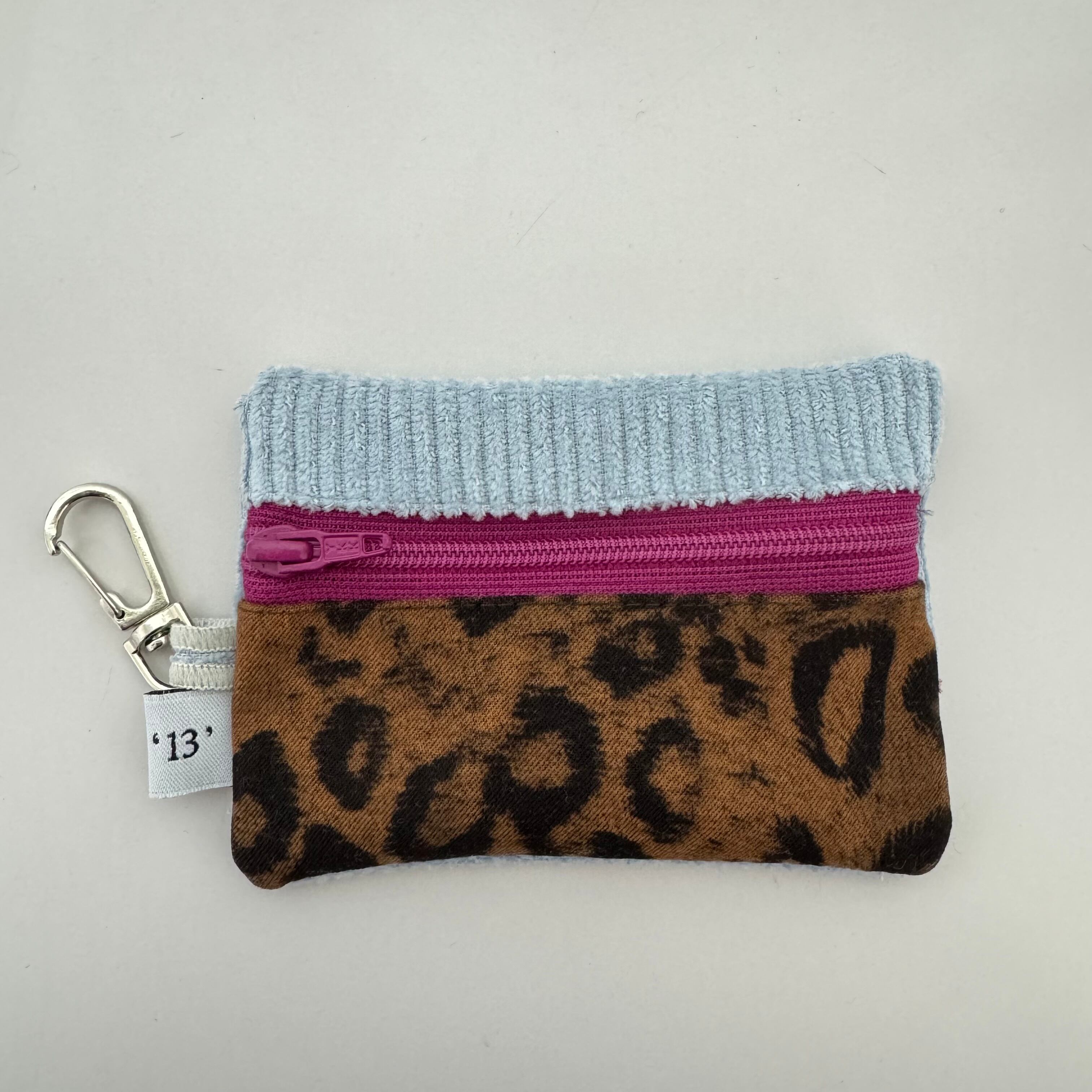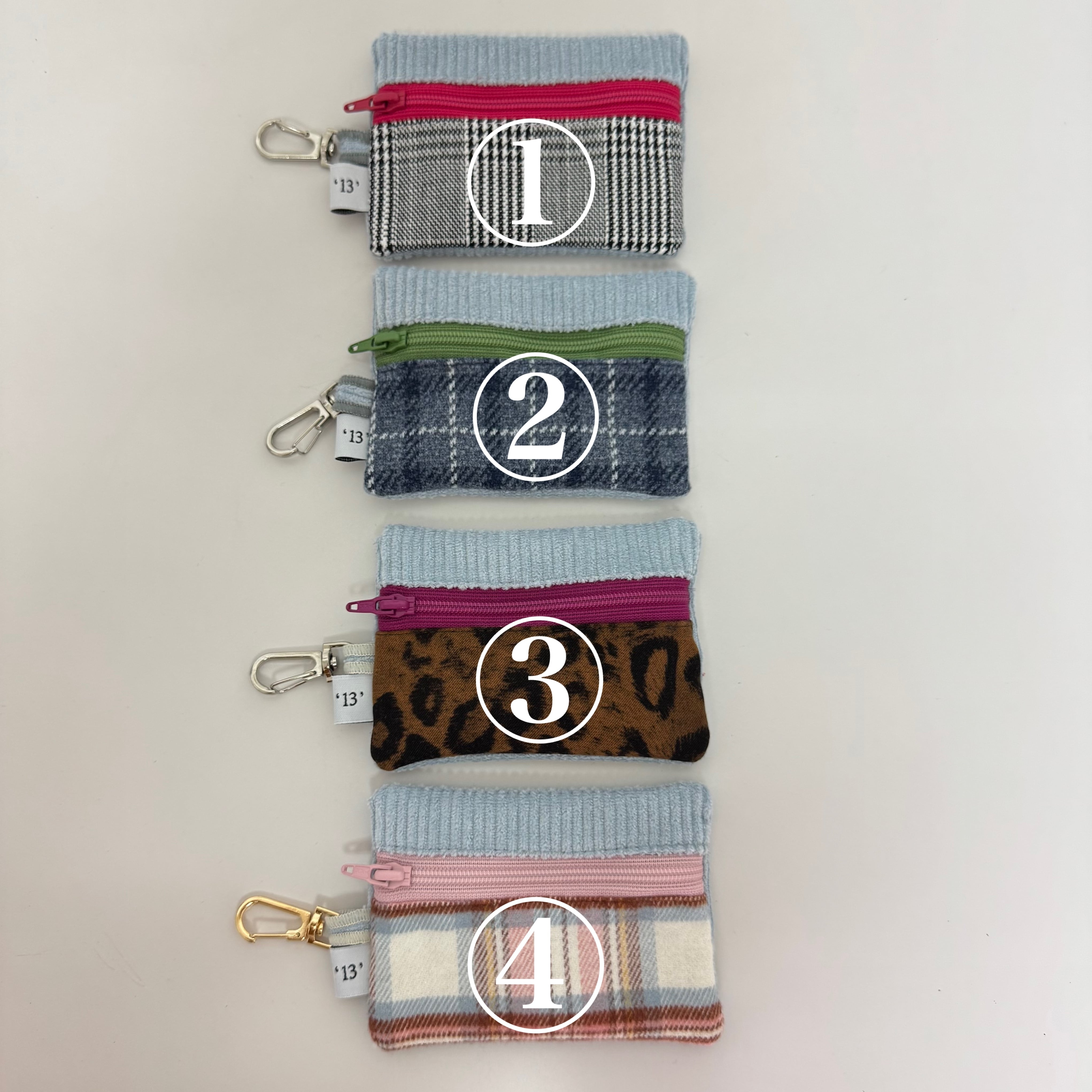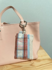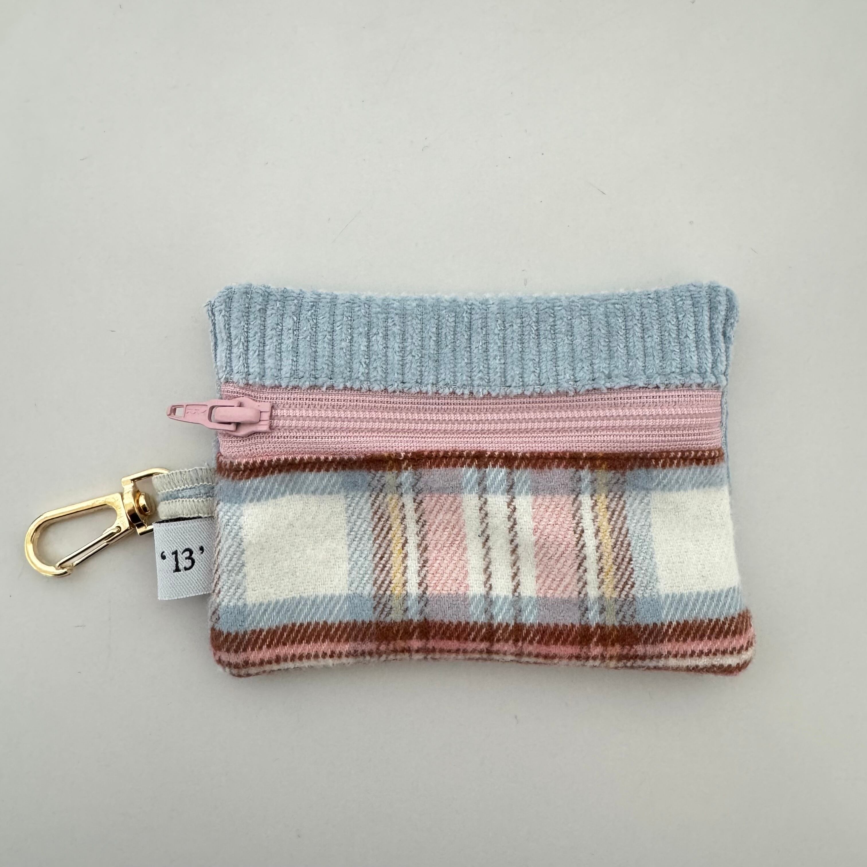 ライトブルーカラーのコーデュロイ生地のミニポーチです